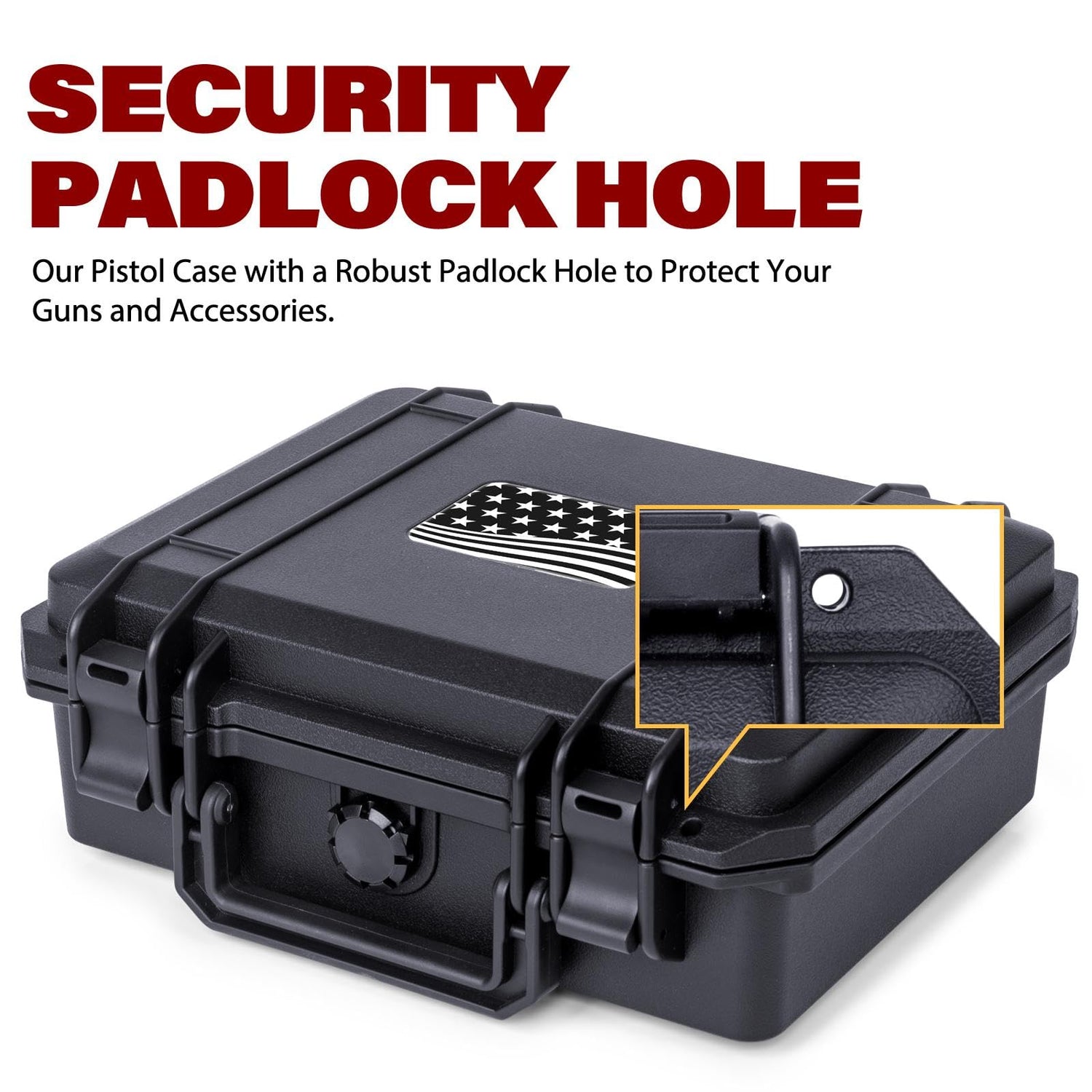 • Enhanced Security: Built-in padlock holes (padlocks not included); TSA-Approved, ensuring safe transport of pistols