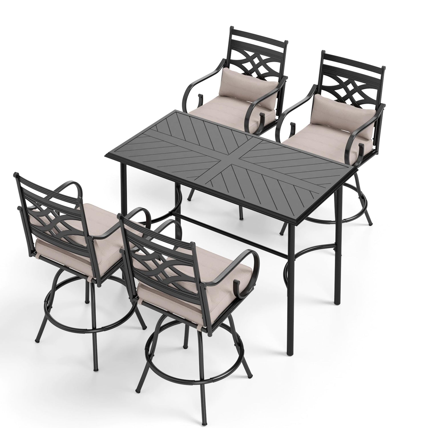 MFSTUDIO 36.2” Patio Counter Height Bar Table, with Rectangular Heavy Duty Metal Table Top for 4, All Weather Resistant Outdoor Table, Black