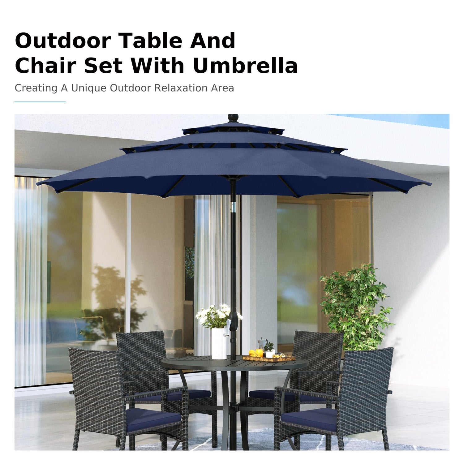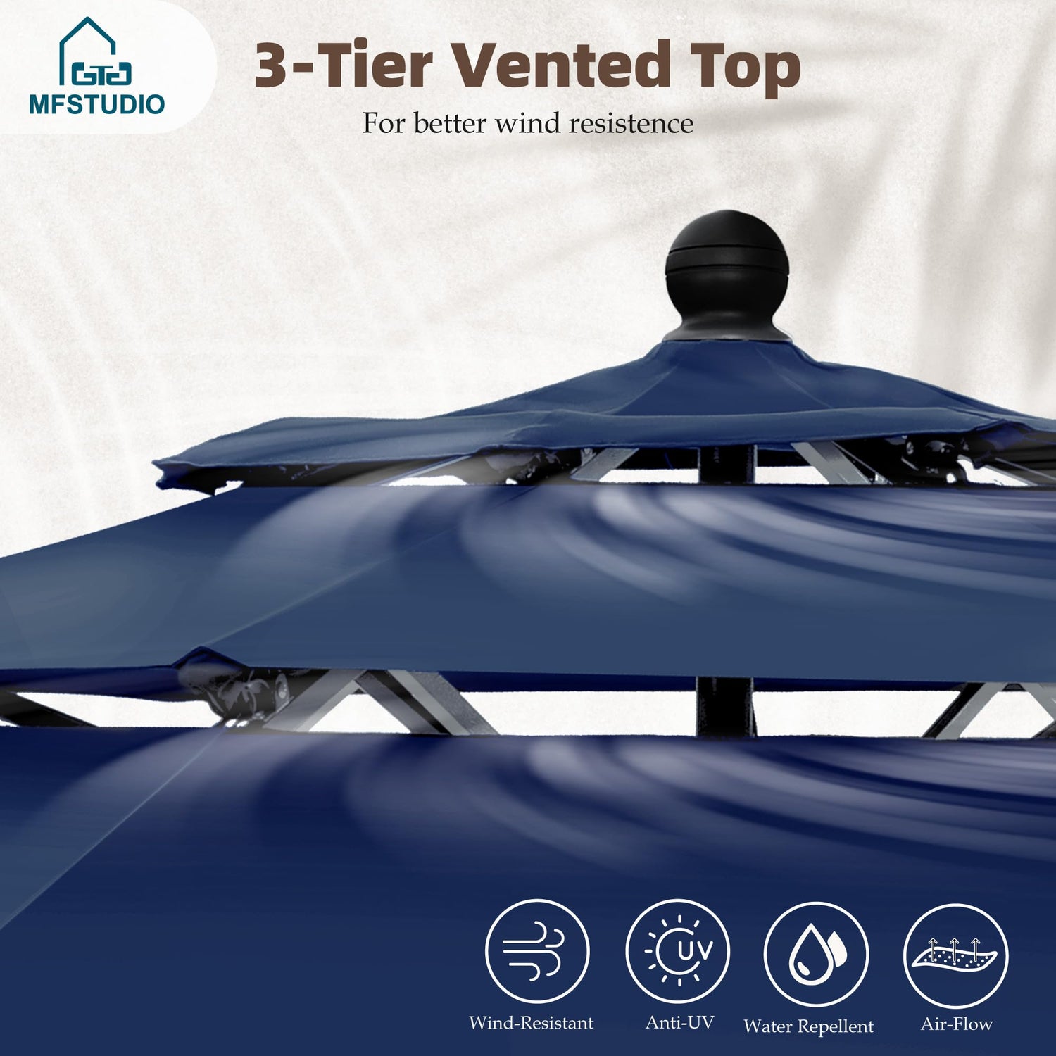 - Large Umbrella - Premium 10 ft umbrella adopts polyester canopy fabric, features fade and water resistant, UV protection. 3 tier vented top is conducive to air circulation and reducing sultry. Convenient crank and tilt system for easier operation and more angles of shading, provides extra-large shelter to enjoy shady place. Beige, Orange Red and Navy blue, always one option fit for you(Umbrella base not included)