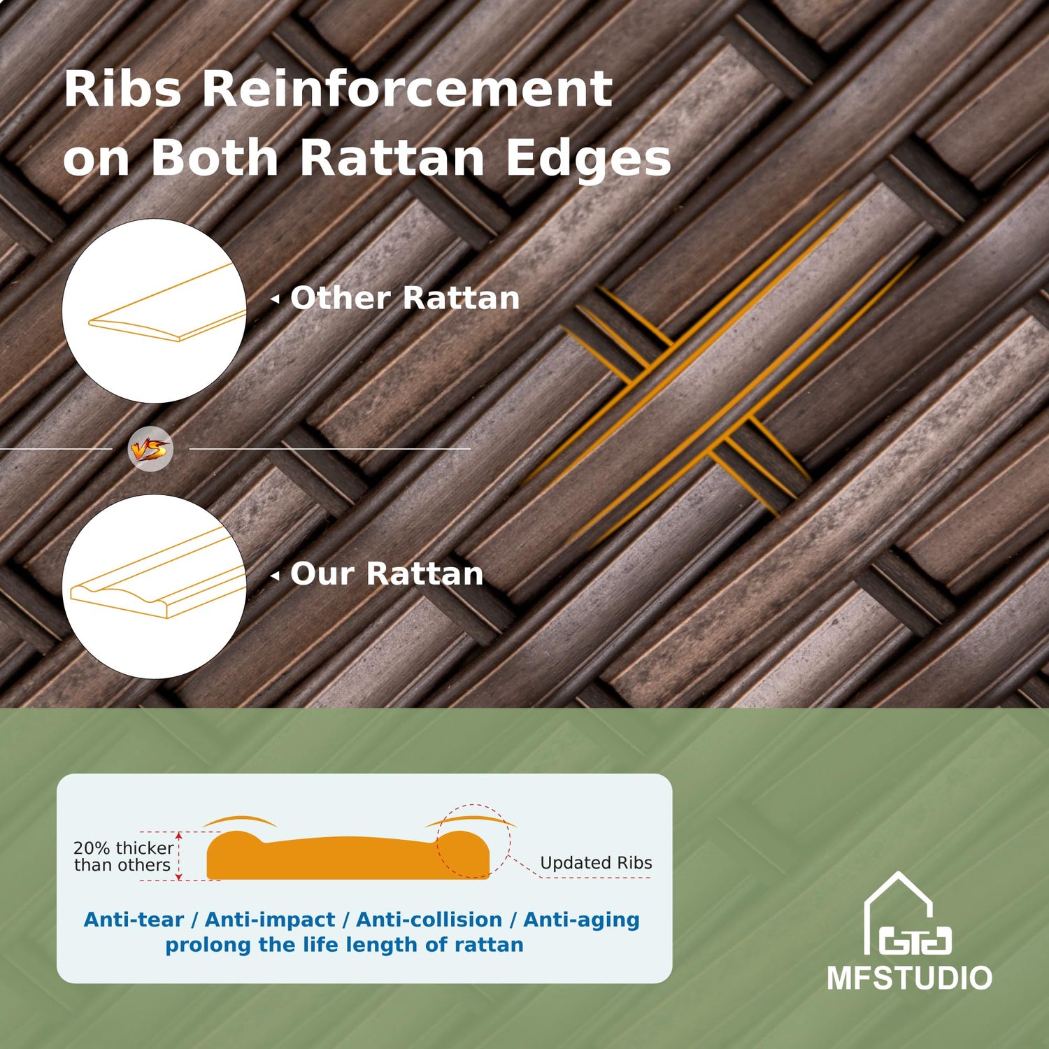 - Durable Rattan & Sturdy Frame: This outdoor patio furniture set is made of high-quality handwoven PE rattan. Additional reinforced ribs on both rattan edges make it more durable and suitable for different weather. Constructed with sturdy metal frame, can effectively improve weight capacity. Note: Blanket and other decorations are not included. Pls check description for more details.