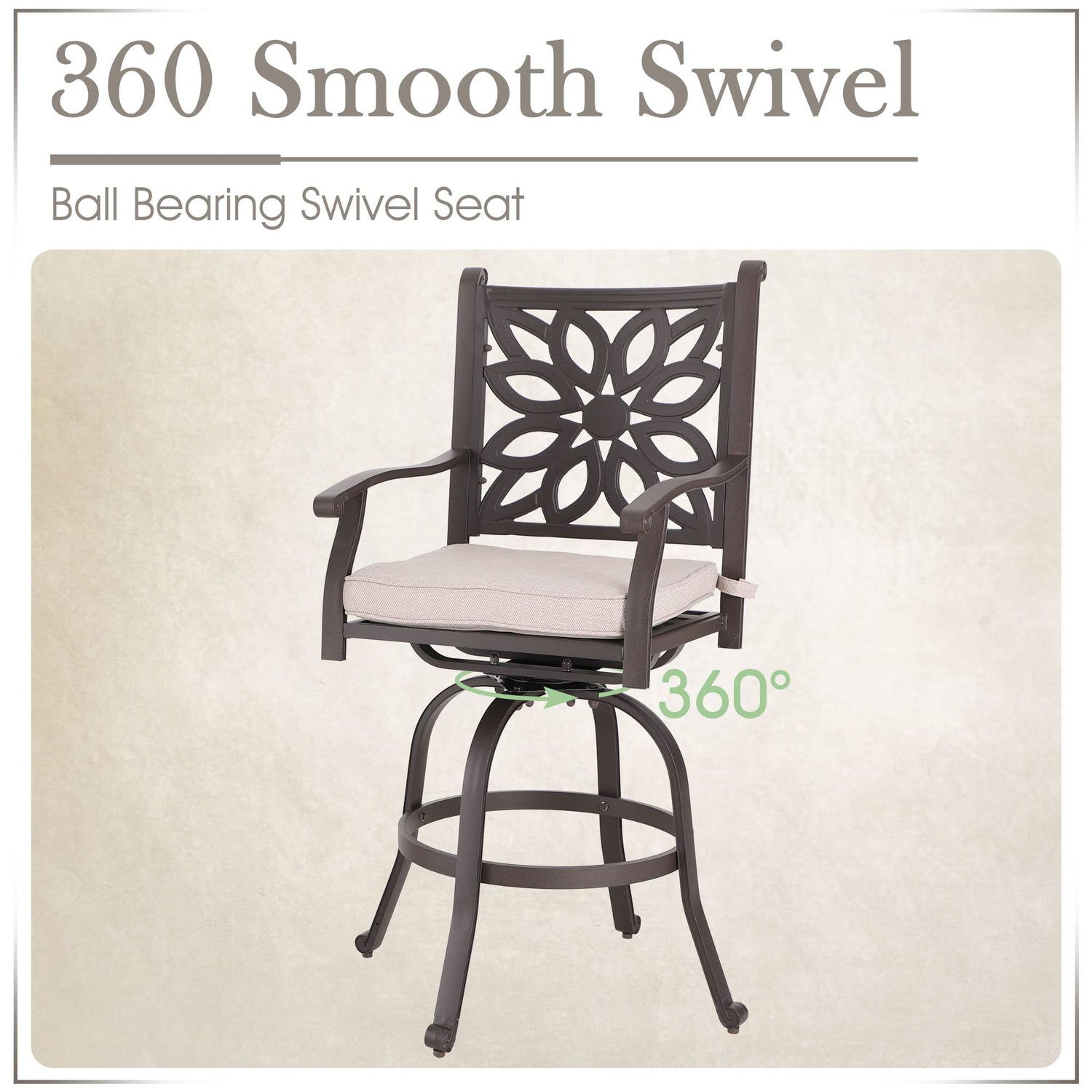 MFSTUDIO Cast Aluminum Bar Height Patio Dining Set of 7, Outdoor Table and Chairs Set with 1×54" Round Aluminum Patio Table and 6×Swivel Outdoor Bar Stool
