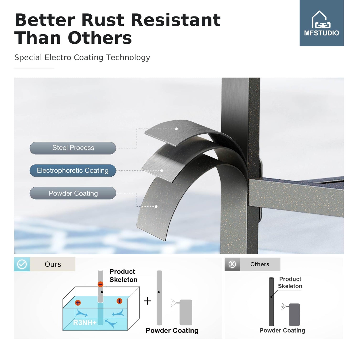 - STURDY & DURABLE: Heavy-Duty Elegant Black Steel Frame, with E-coating for Rust and Corrosion Resistant. Metal steel frame longevity with e-coating needs no special maintenance,rust and weather resistant, easy to clean, easy to assemble