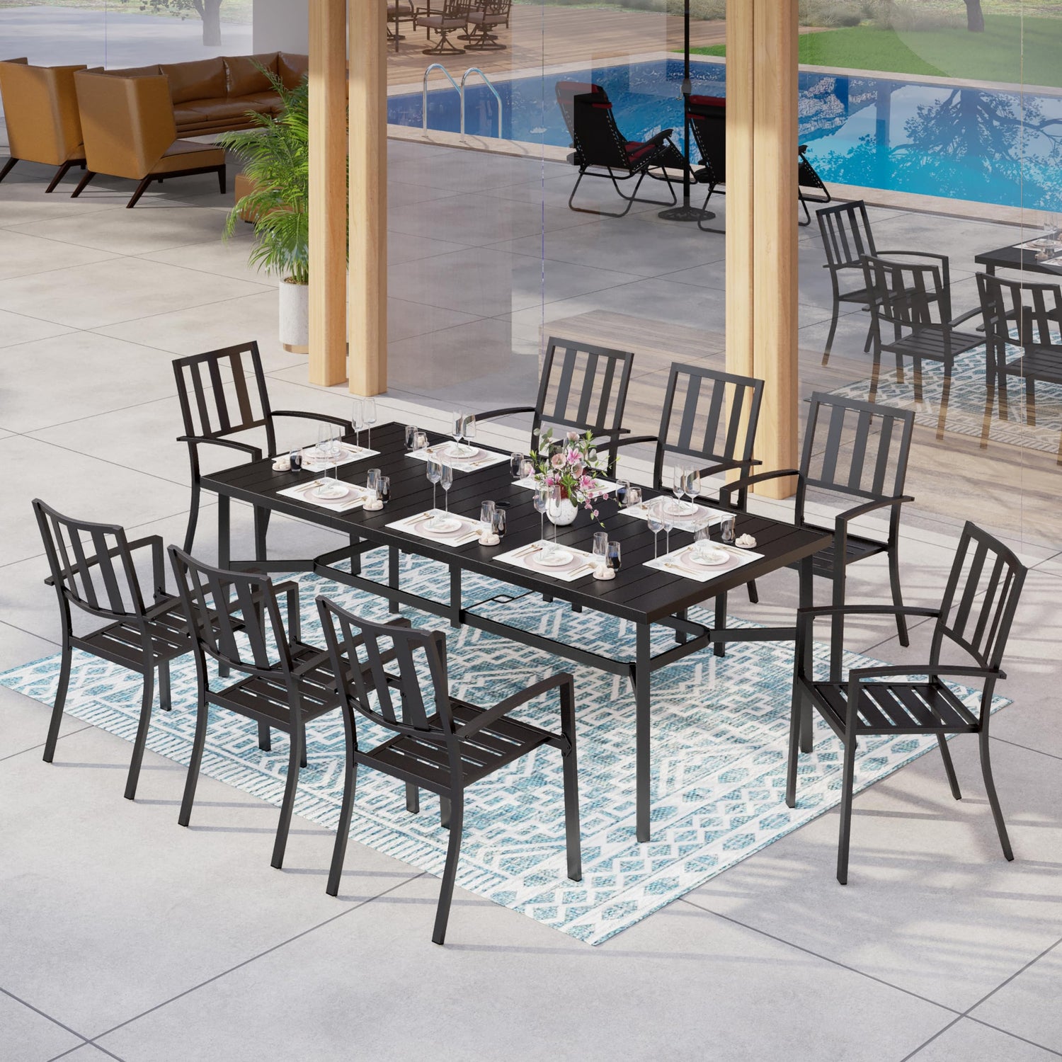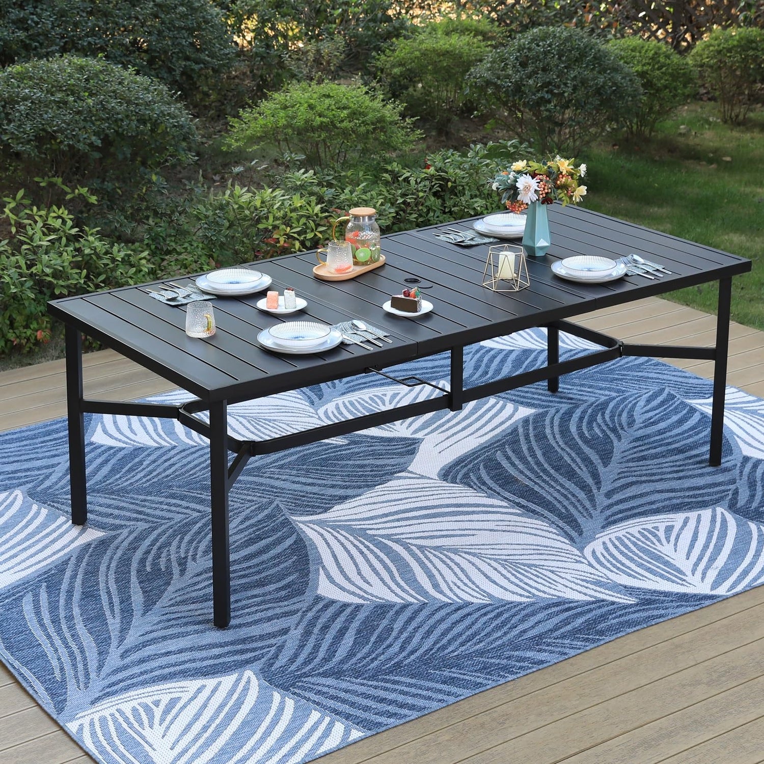 MFSTUDIO Outdoor Dining Set for 8, Patio Table and Chairs Set with Umbrella Hole, 9 Piece Metal Patio Dining Sets, Outdoor Patio Furniture Set for Deck Backyard Poolside Garden