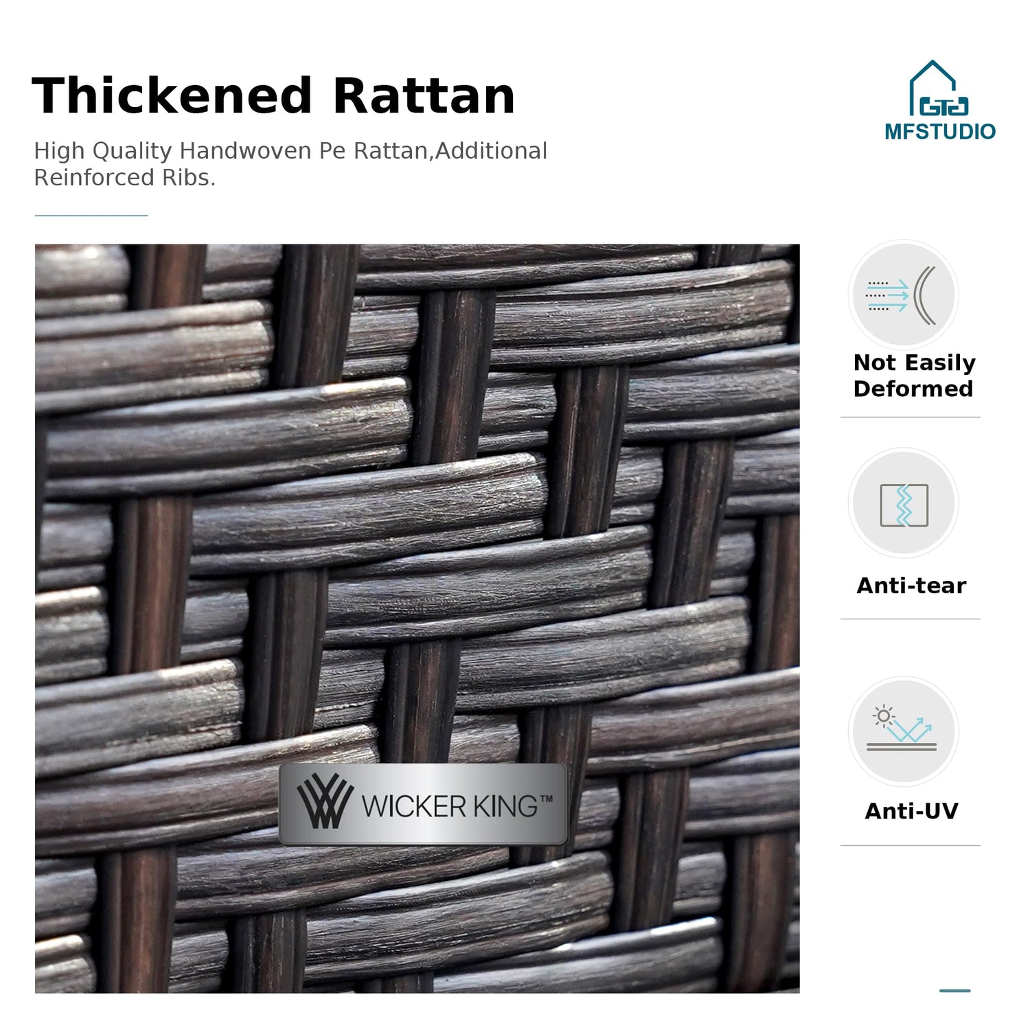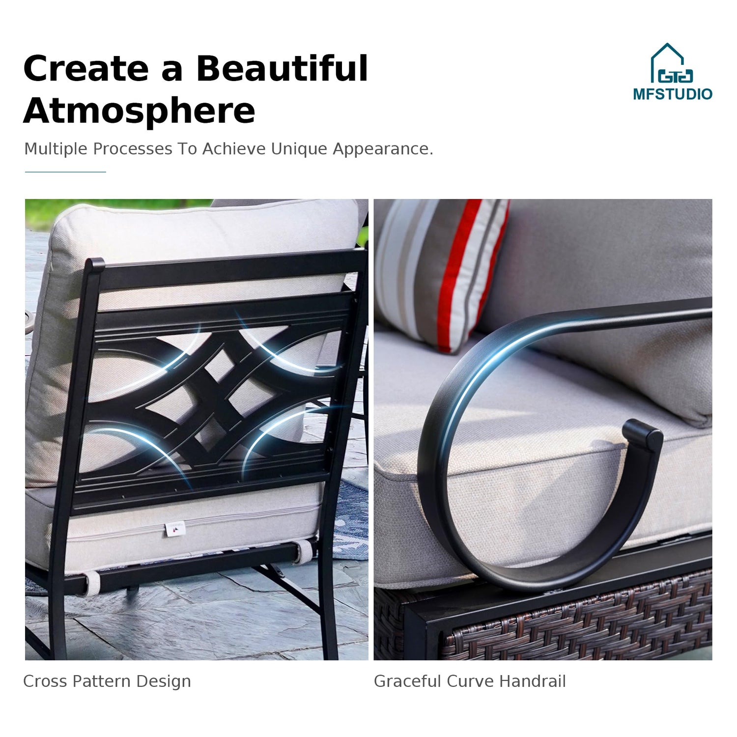 - Comfortable Cushions: MFSTUDIO 5.5" Thicker cushions have Cushion-Pro Technology, which have excellent water, oil and stain resistance. All the cushions are filled with high-density sponge. Each cushion cover features Velcro and zipper, which help secure the cushion in place to prevent slipping, and make the cover easy to remove and wash