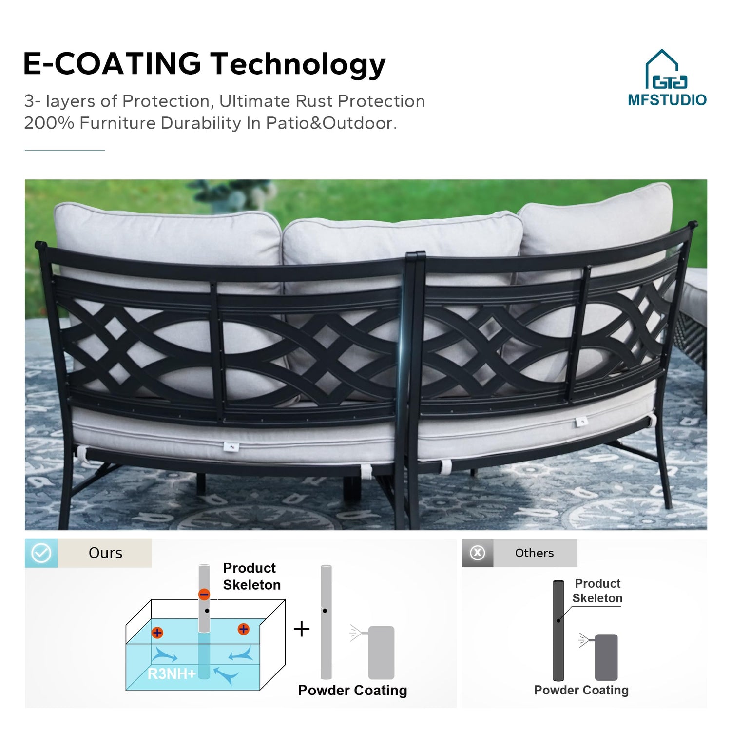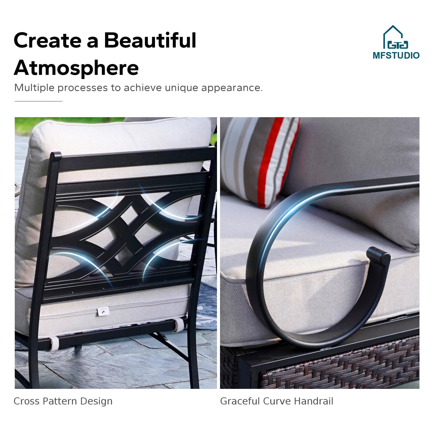 - Comfortable Cushions: MFSTUDIO 5.5" Thicker cushions have Cushion-Pro Technology, which have excellent water, oil and stain resistance. All the cushions are filled with high-density sponge. Each cushion cover features Velcro and zipper, which help secure the cushion in place to prevent slipping, and make the cover easy to remove and wash