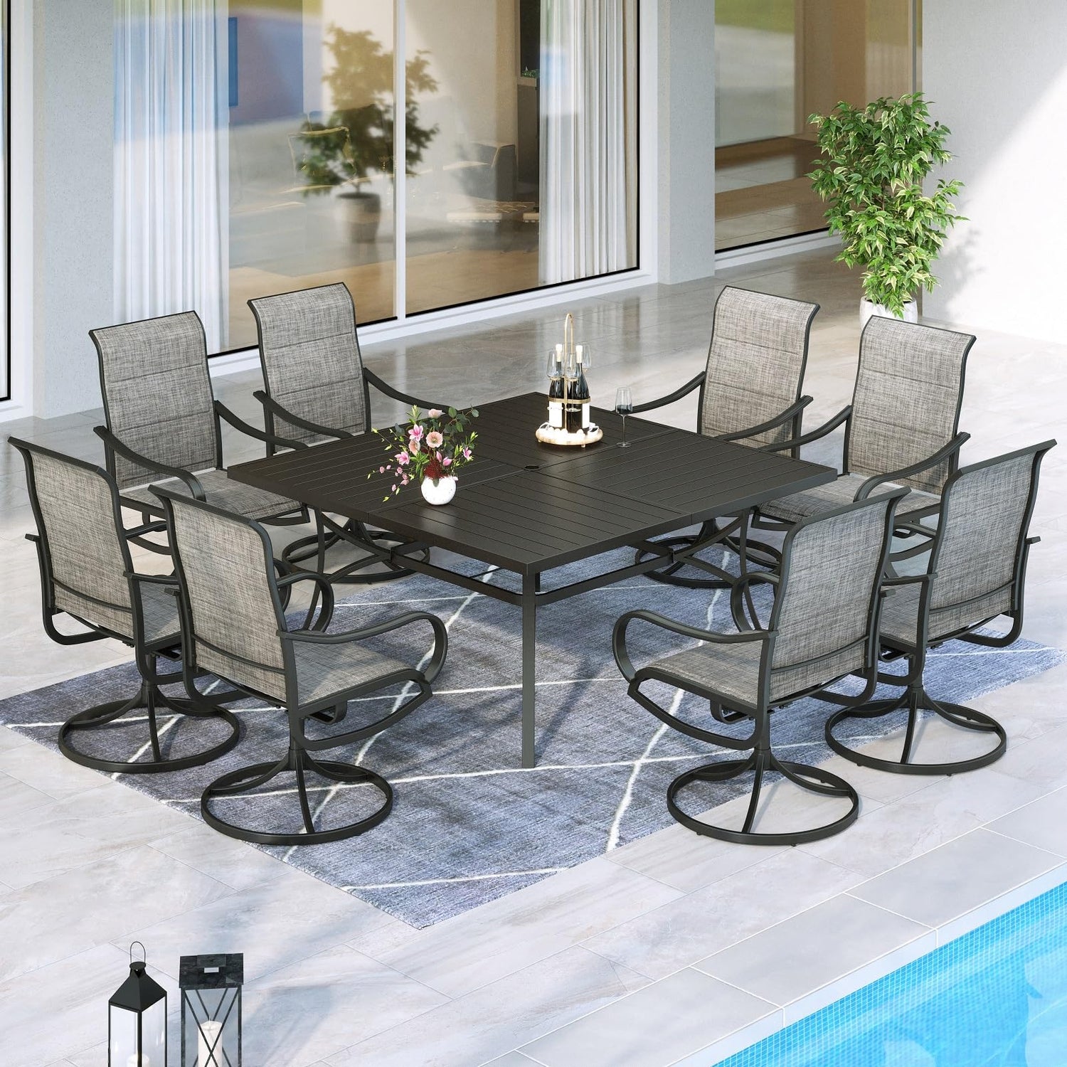 MFSTUDIO Patio Table and Chairs Set, Patio Dining Set for 8 with Umbrella Hole, 9 Piece Outdoor Patio Furniture Set for Deck/Backyard/Poolside/Garden