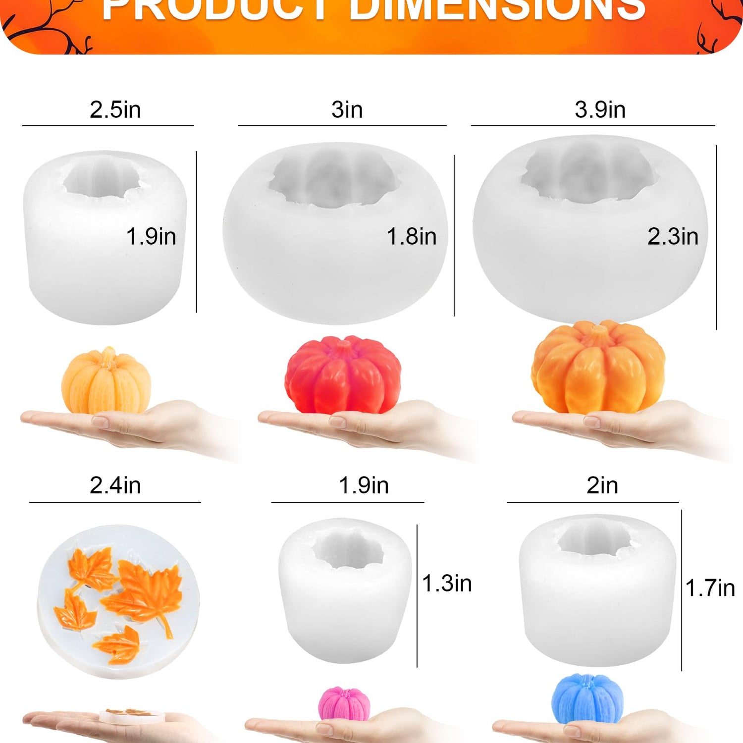 - 【6 pcs Halloween pumpkin silicone mold set】The Halloween mold set includes 5 different sizes of pumpkin silicone molds + 1 maple leaf mold, and comes with 10 wax cores,so you can make pumpkin candle molds as soon as you receive it, Light up your space,adding endless fun to your Halloween party and creating a pleasant party atmosphere.