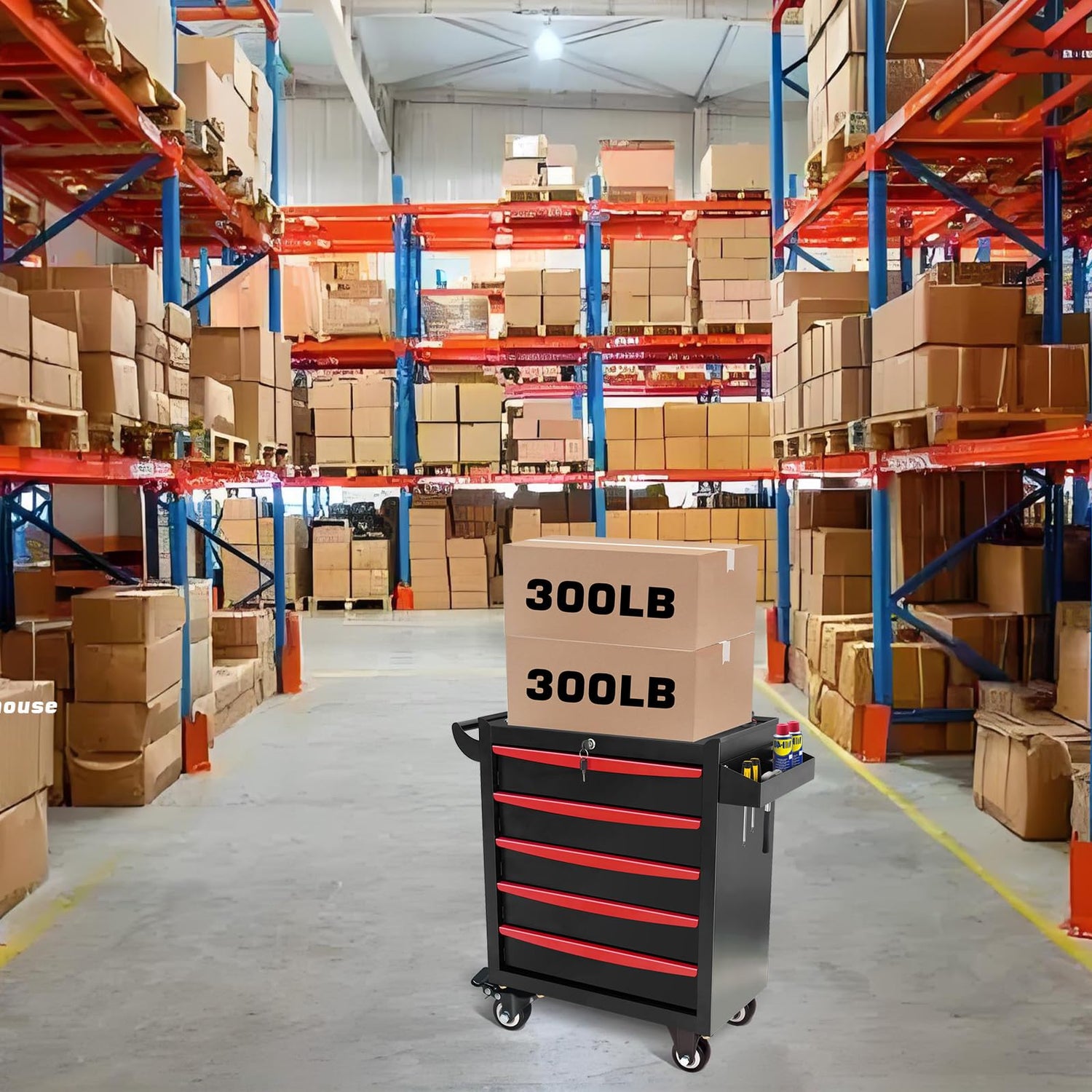 - 【Locking System and EVA Liners】: The tool cabinet comes with a key locking system and includes two keys. It securely locks tools and accessories to prevent them from falling or sliding during transport. The 5 drawers and top compartment are lined with EVA pads to keep tools organized and prevent scratches to the tool box.
