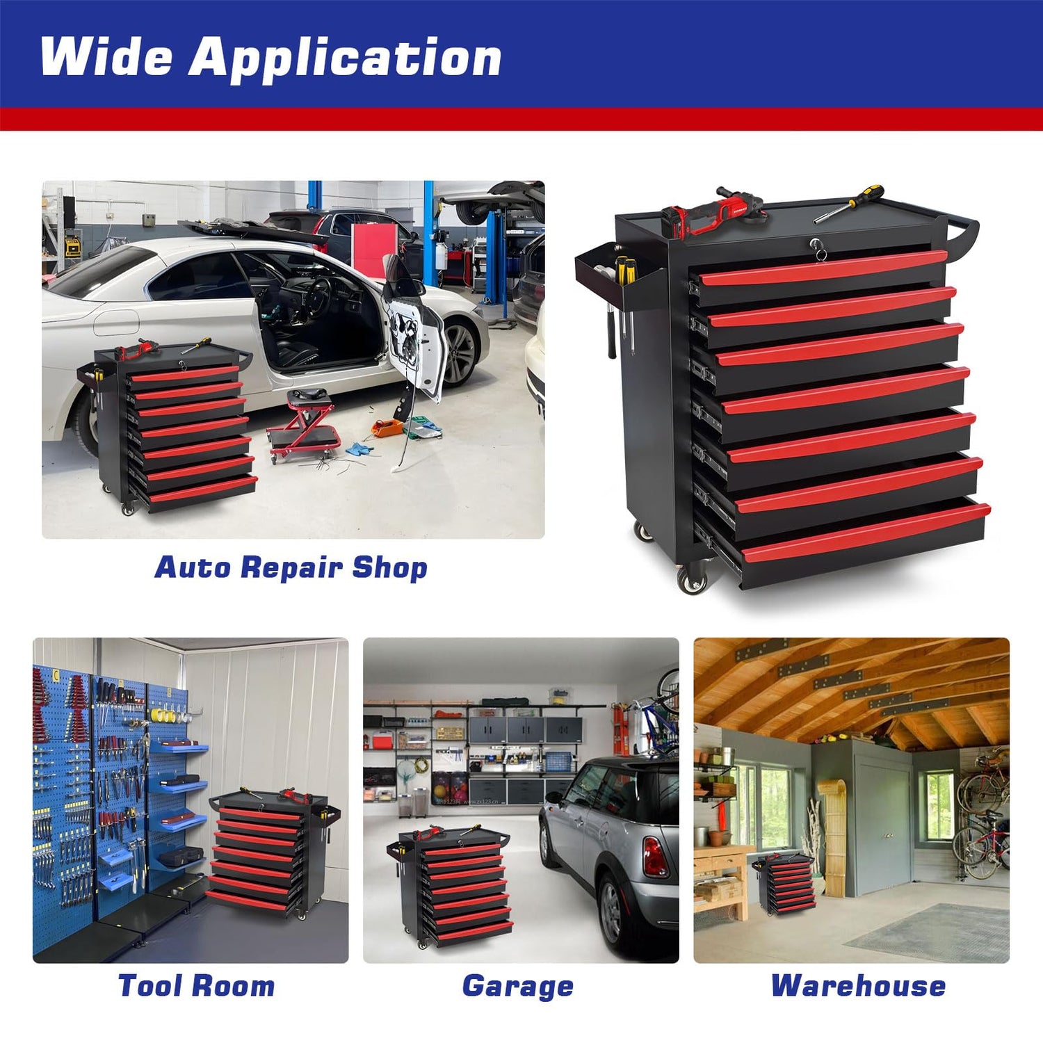 Details: MHEOMTME Rolling Tool Chest with Drawers, Craftsman Tool Box Organizer, Toolbox Cabinet with Keyed Locking System, 7 Drawer Tool Storage Cart on Wheels for Garage, Workshop and Repair Room, Black