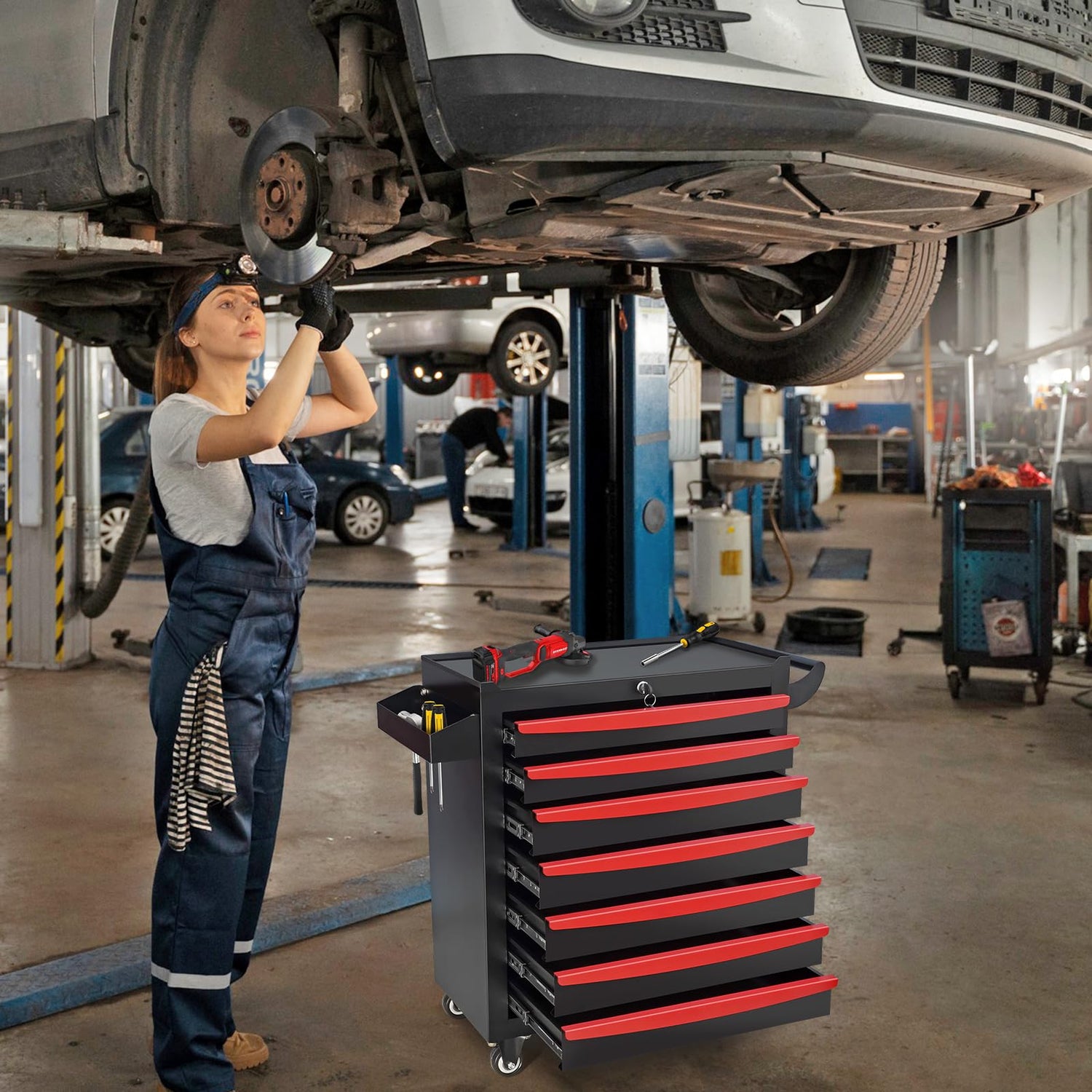 MHEOMTME Rolling Tool Chest with Drawers, Craftsman Tool Box Organizer, Toolbox Cabinet with Keyed Locking System, 7 Drawer Tool Storage Cart on Wheels for Garage, Workshop and Repair Room, Black