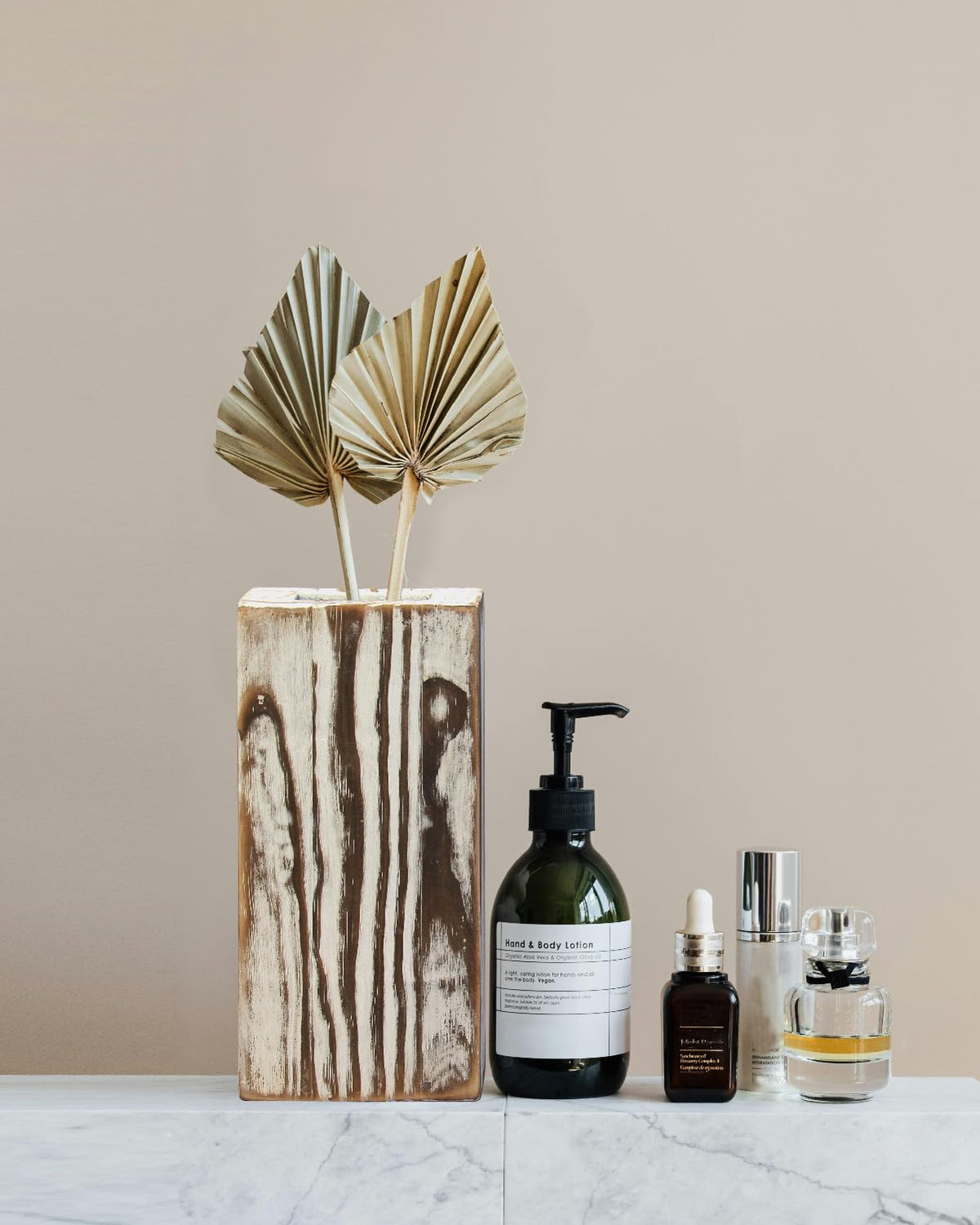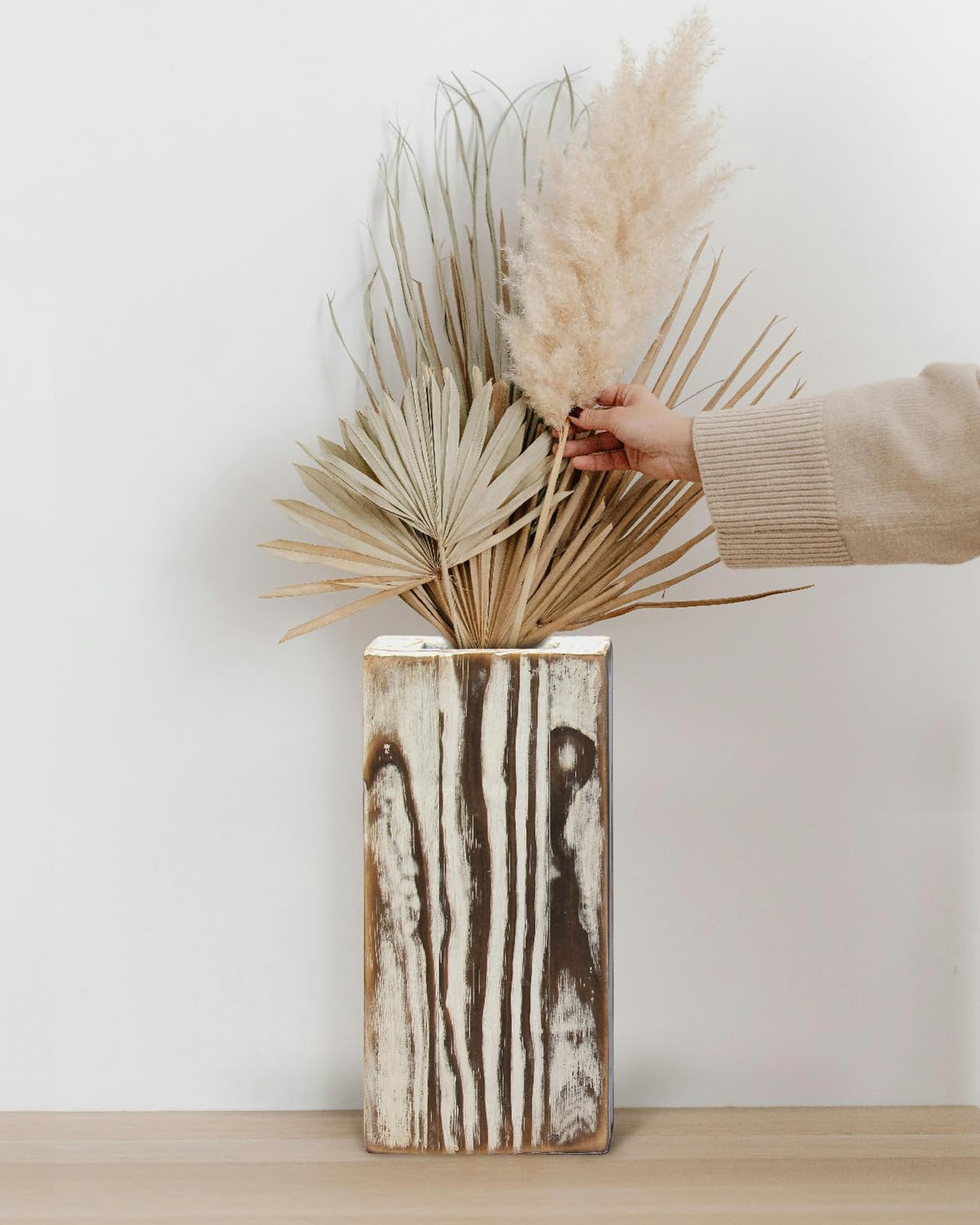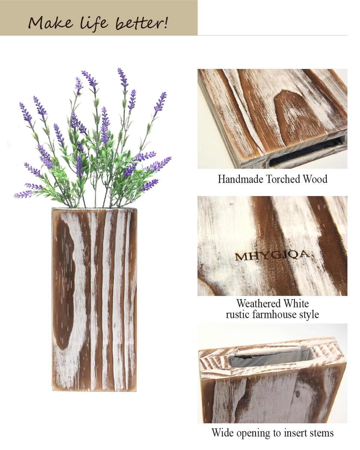 MHYGJQA Wood Wall Planter for Indoor Plants,2 Pack Handmade Torched Wood Wall Decor for Dried Flowers and Faux Greenery Plants,Modern Farmhouse Wall Vase Bathroom,Bedroom,Living Room(Weathered White)
