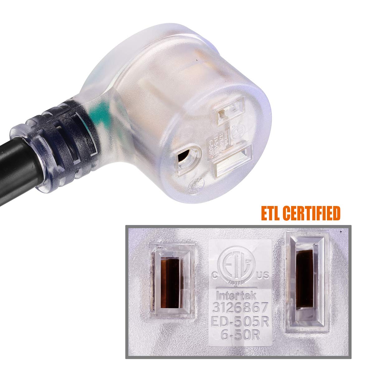 Miady 25ft 50AMP Welder Extension Cord, 8 Gauge Heavy Duty Industrial NEMA 6-50 Welding Machine Cord with Lighted End, ETL Approved
