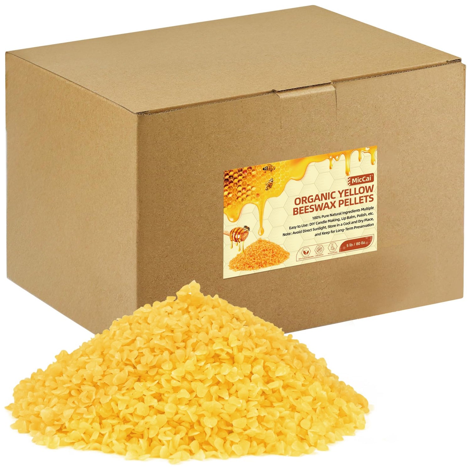 MicCai Yellow Natural Beeswax Pellets 5LB, Organic Beeswax, Beeswax for Candle Making, Body, Skin Care DIY, Lip Balm, Soap and Lotion Making Supplies