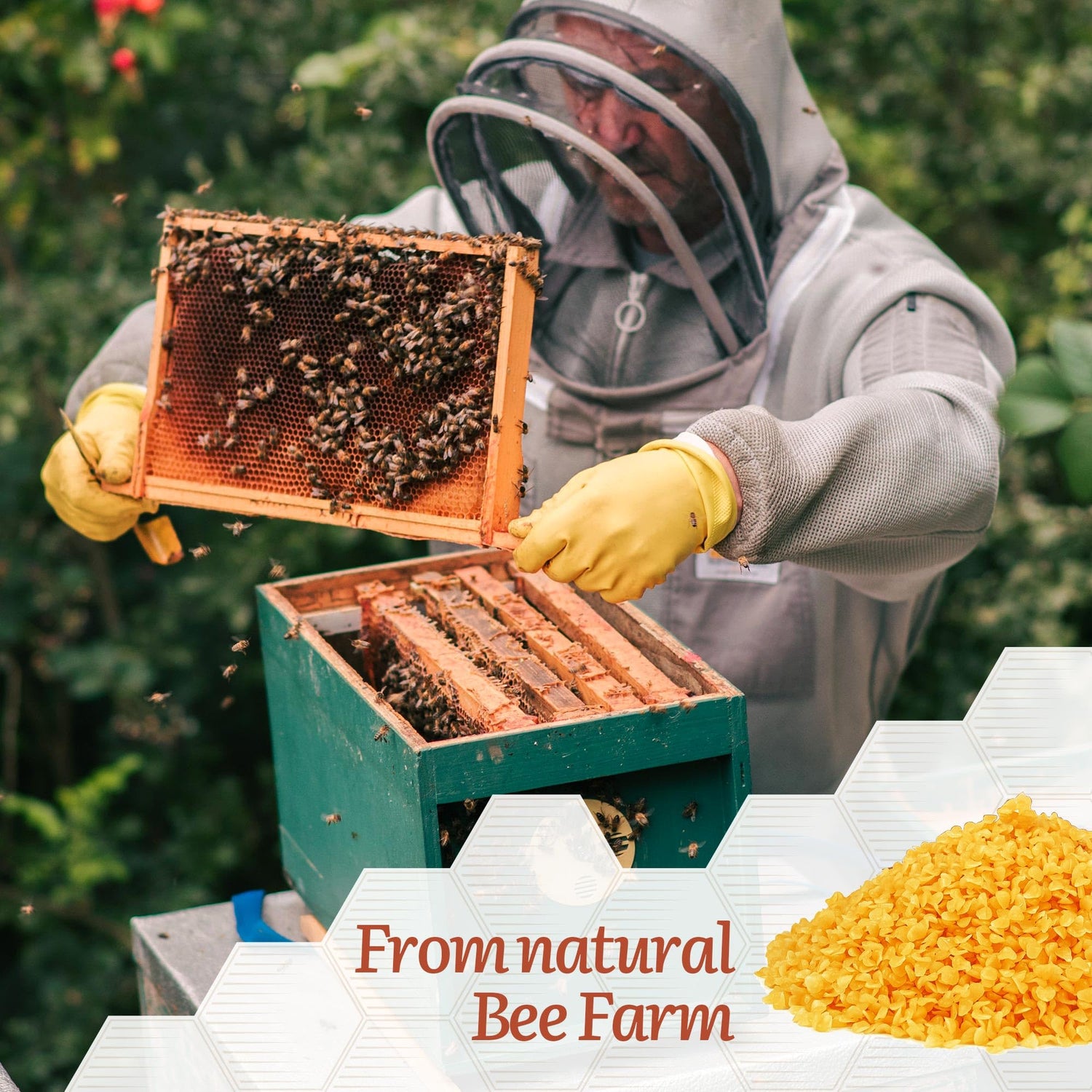 - [ ORGANIC BEESWAX ] Our beeswax pellets come from natural bee farms.Natural beeswax contains propolis and bee pollen, and has the sweetness like that of natural honey. MicCai beeswax pellets do not contain paraffin, palm wax, soy wax or any other unhealthy additives. After going through three rounds of filtering, they have no chemical substances and are natural biodegradable and sustainable products