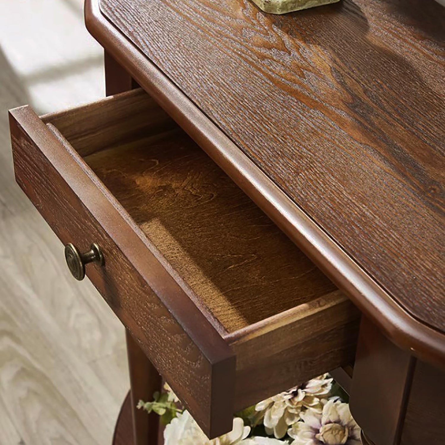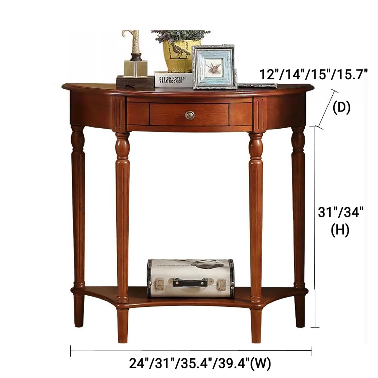 Mid-Century Console Table,Solid Wood Half Moon Table For Entryway Hallway Porch,Half Circle Table With Storage Drawer,Wooden Wall Sofa Table Small Accent Table(24"L x 12"W x 31"H, Cherry Wood)