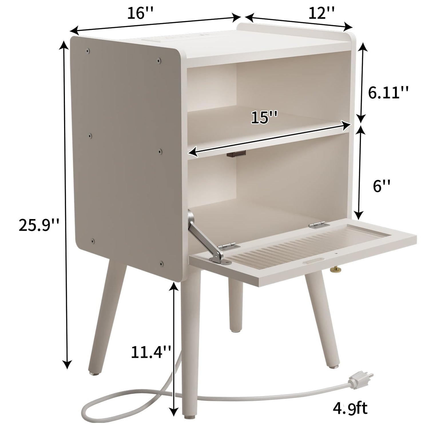 - With 2 x USB Ports & 2 x 3-Prong Power Outlets - Charge your phone or laptop right next to your bed or sofa, it’s within your arm’s reach. The electrical cord is 6.5 ft long, enough to keep you away from wall corner where the home power outlet located. These bedside tables are perfect for use in the bedroom.