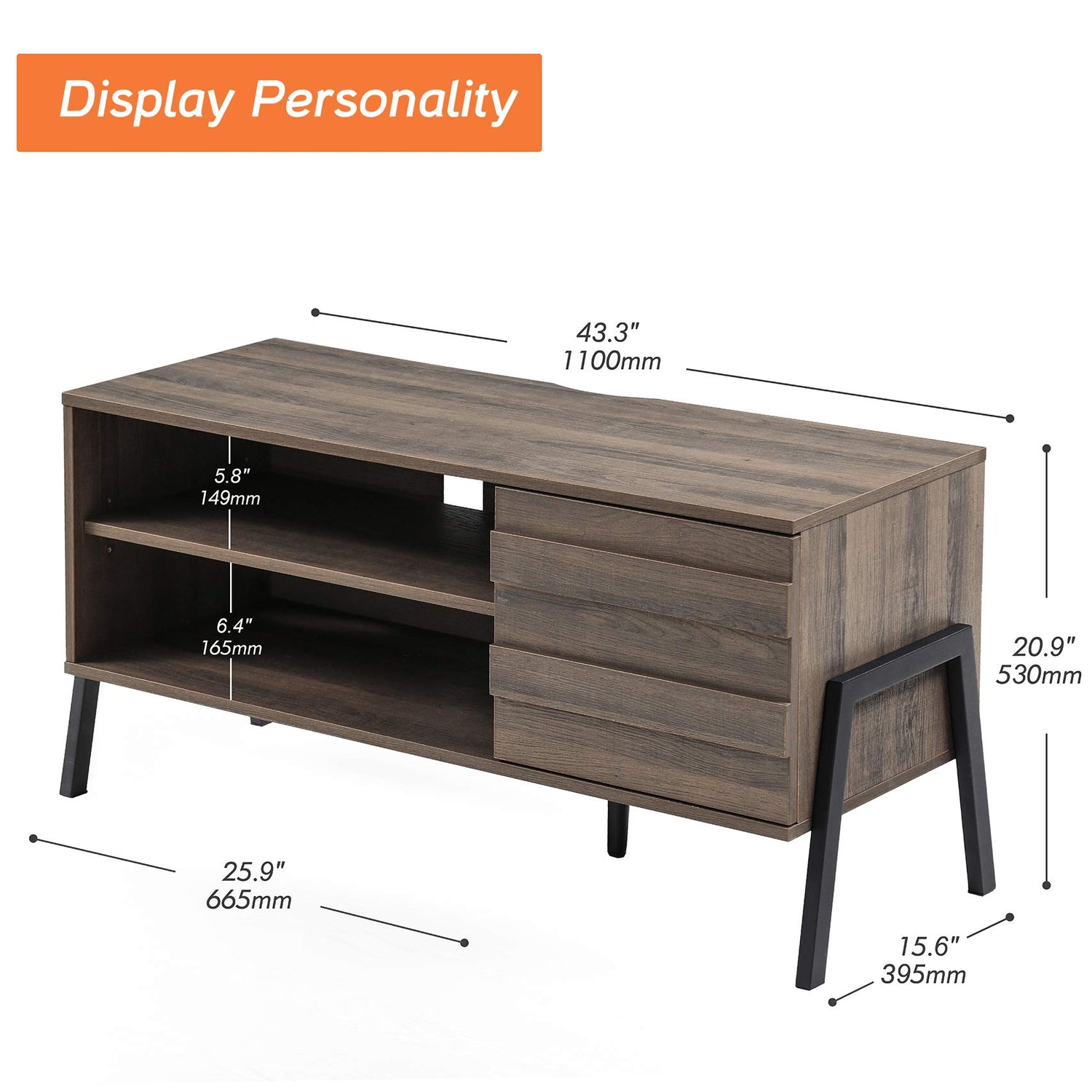 Mid-Century Modern TV Stand for 55 inch TV Entertainment Center Wood TV Table Media Console with Metal Legs for Living Room Bedroom, 43'' Rusitc Brown