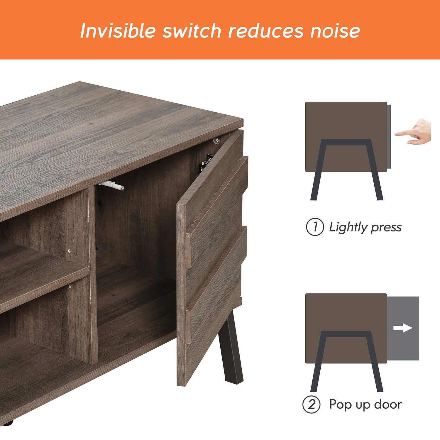 - 【Multifunctional Storage & Adjustable Shelf】 This modern entertainment center features 2 shelving areas and push-to-open door helps make your home feel lived in and neat.Adjustable-height shelves provide large and useful storage capacity space.