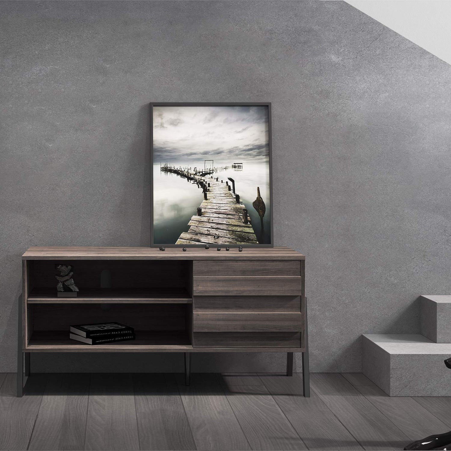 - 【Natural Wood Grain & Stable Construction】Made from high-grade certified MDF for long-lasting construction. Its natural wood grain surface and clean lines present an advanced texture and natural beauty. The metal legs on both sides and the two bottom solid wood support legs make it more sturdy, firm and can fit most brands of TV.