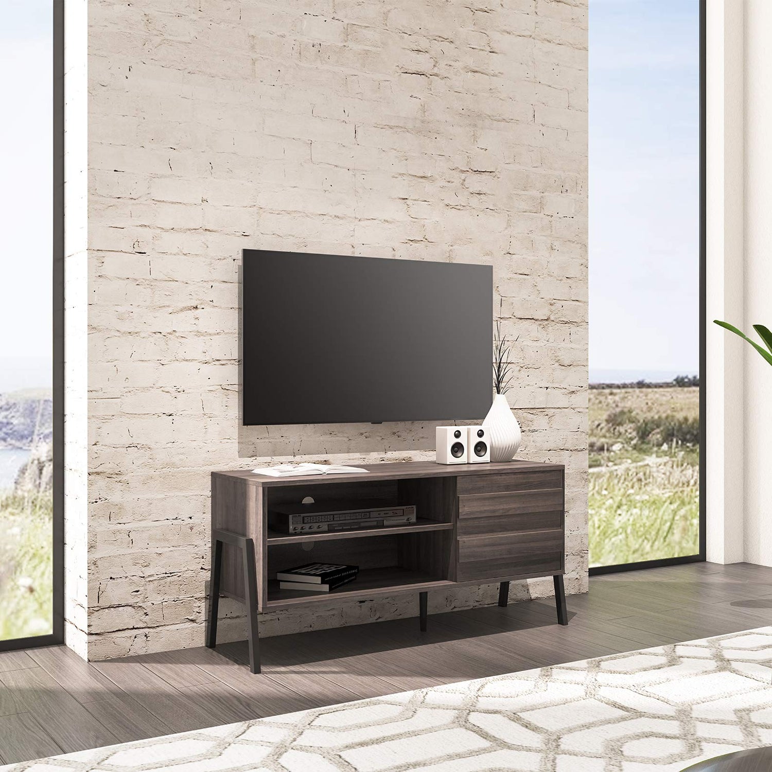 - 【Mid-Century TV Stands】 This TV stand is designed with dimension of 43.3 L x 15.6 W x 20.9 H inch, making it recommended for TV's up to 55 inch. The TV Stand crafted from the classic finish and the solid wood legs.It will be a perfect spot to hold a TV in your living room.