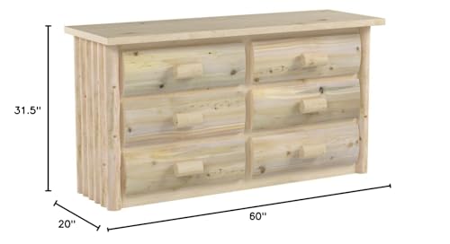 Midwest Log Furniture White Cedar Log Dresser [6 Drawer] - Unfinished/Dovetailed/Solid Wood/Amish Handcrafted in USA