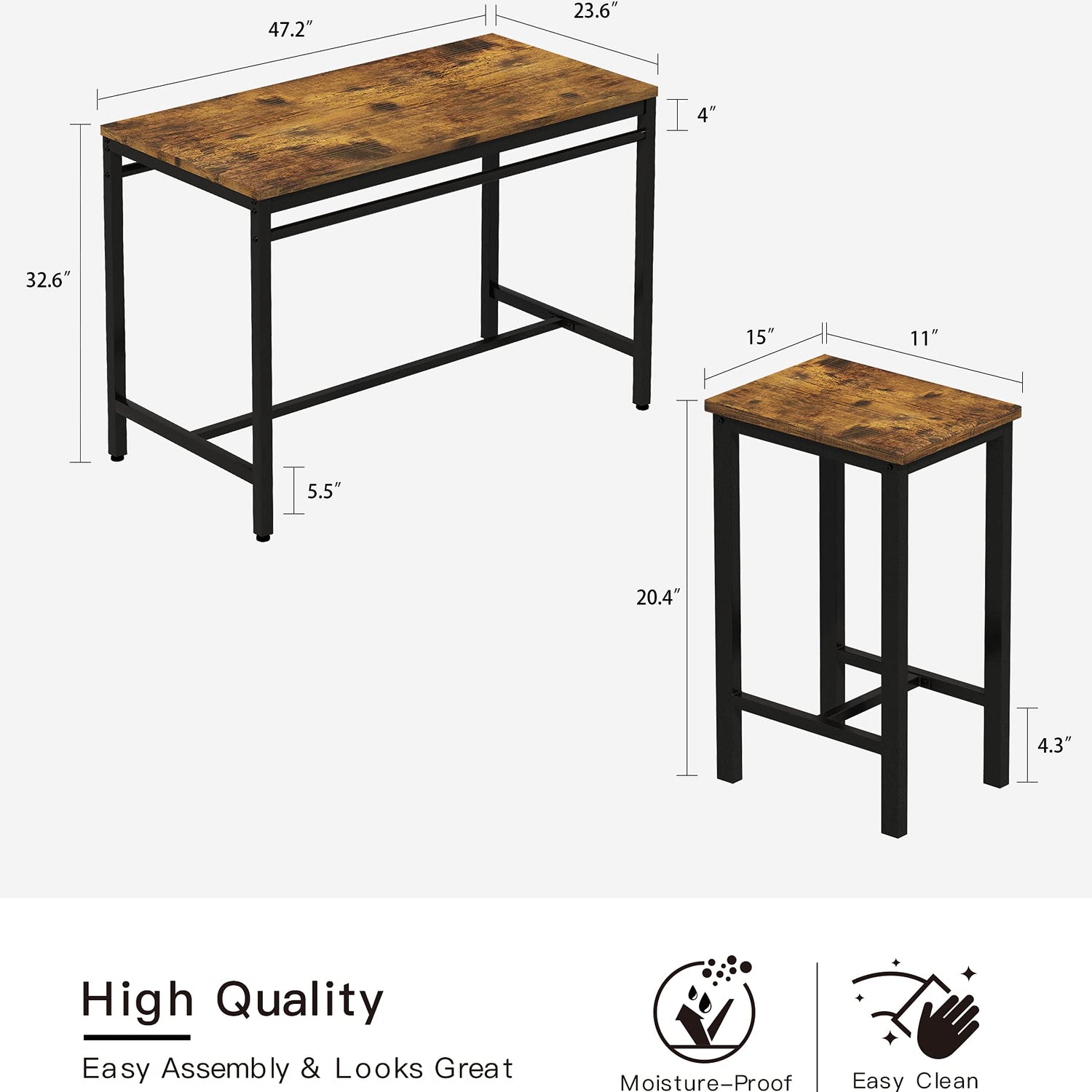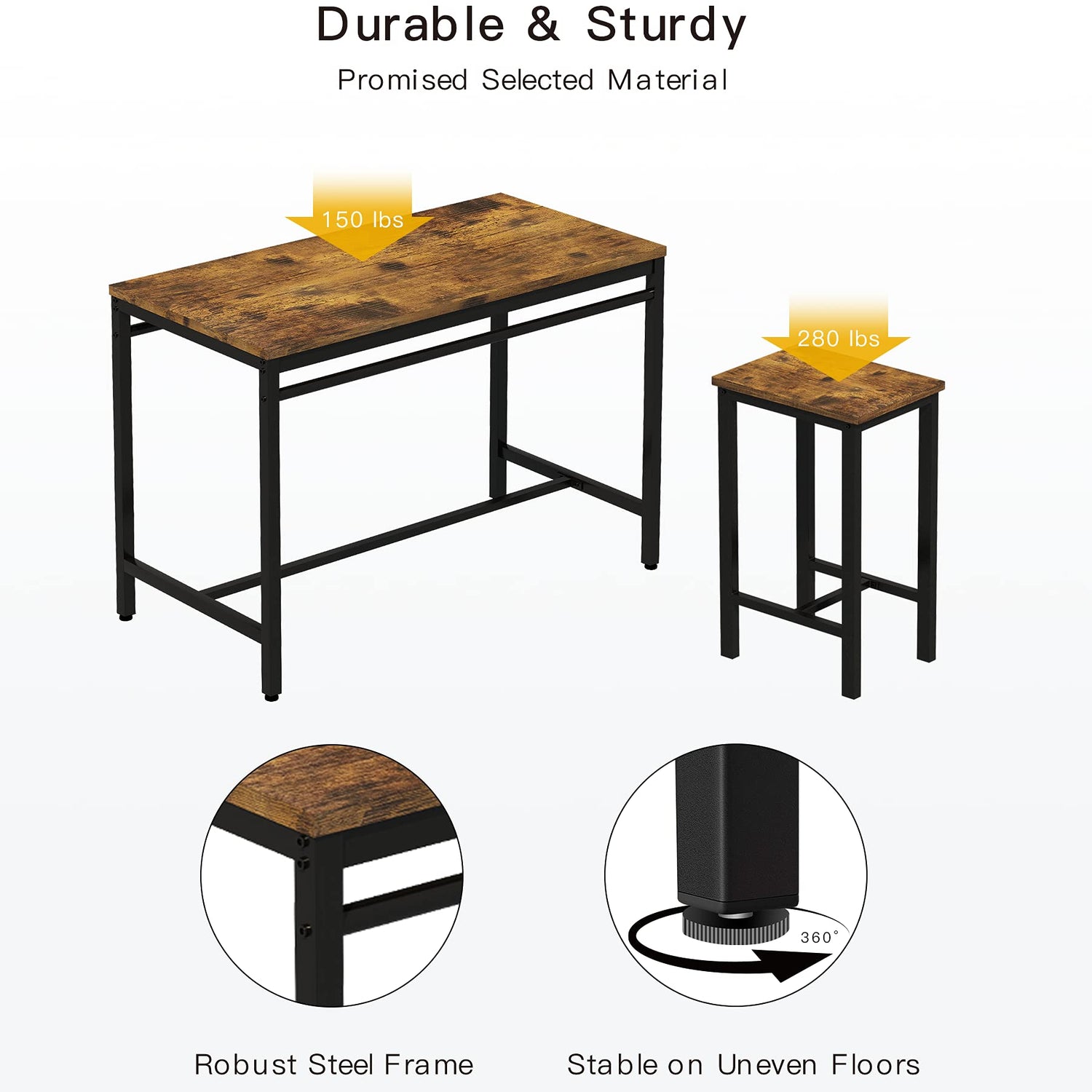 - **Sturdy Construction**: Engineered with a high-quality MDF tabletop and a durable metal frame, this dining set ensures longevity and stability, confidently supporting up to 200 lbs for the table and 250 lbs for each stool.
