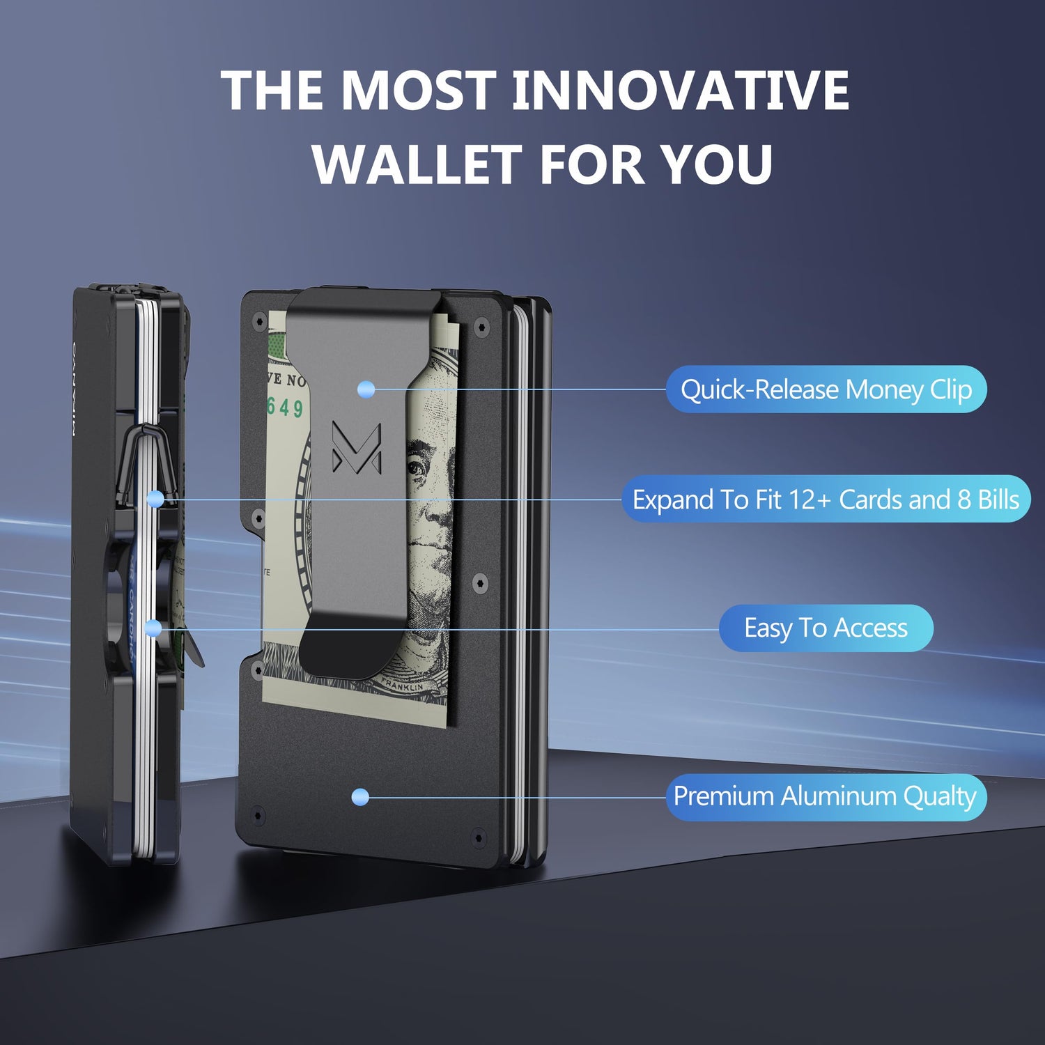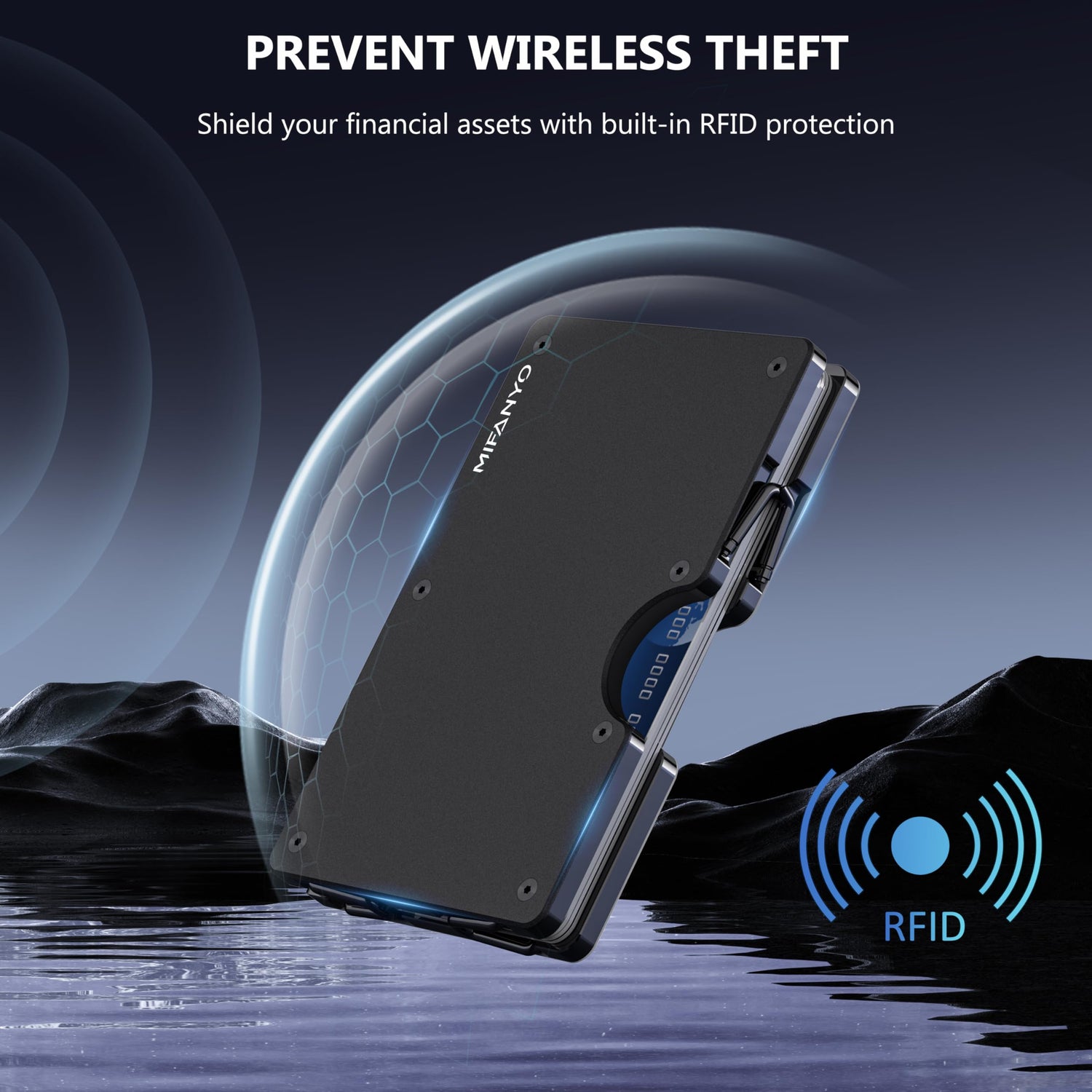 - High Quality Wallet For Travel: Be confident in MIFANYO wallet please, no matter where you go. Our minimalist card wallets are manufactured from the highest grade military Aluminium materials available. Ergonomic, lightweight, scratch-resistant. With a push of your finger, you will have easy access to every card within our wallet. Just 3.48 x 2.17 x 0.32 inches, can accommodate 1-12 cards and 6 bills.