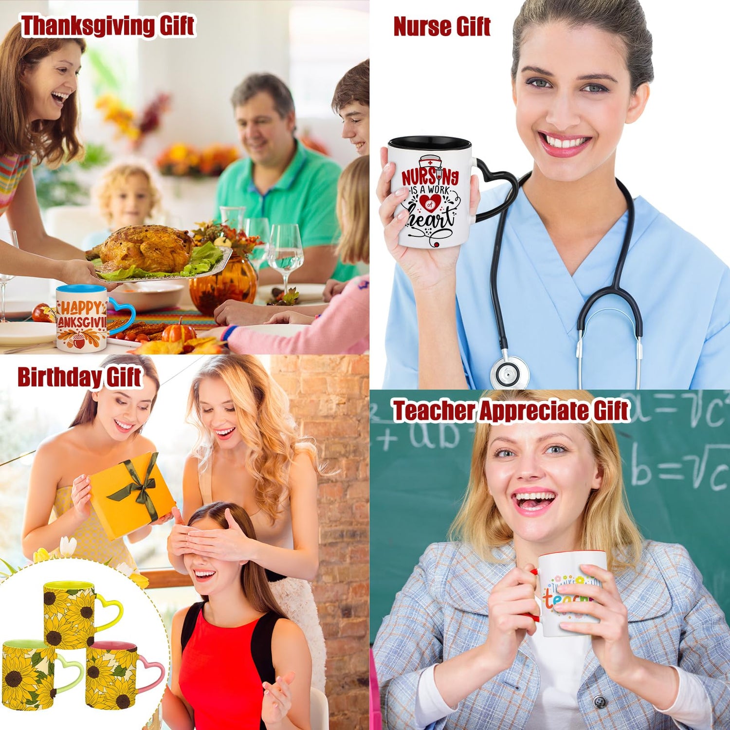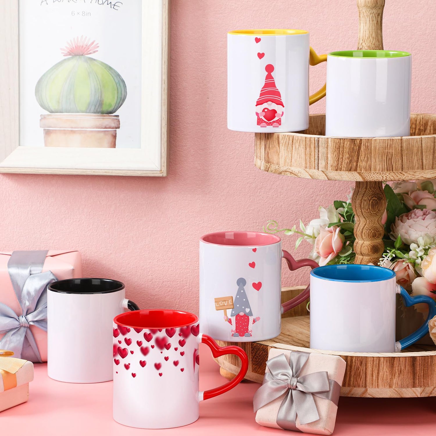 Mifoci 6 Pack Sublimation Mugs for Christmas Bulk, 11 oz Blanks Sublimation Coffee Mugs with Heart Handle White Ceramic Coffee Cup for Christmas Thanksgivng Employees Gifts(Multicolor)