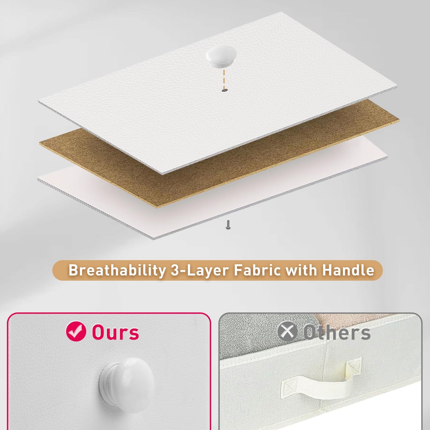 - ✔ 【Safe for Your Family】 Non-woven fabric is breathable and harmless, suitable for children, teenagers and adults. The vertical design easily fits in many places throughout the home, feel free to place the chest of drawers anywhere, living room, bedroom, hallway, entryway, closet, etc.Wooden handles attached to the MDF at the front for added durability and easy pulling even when fully loaded.