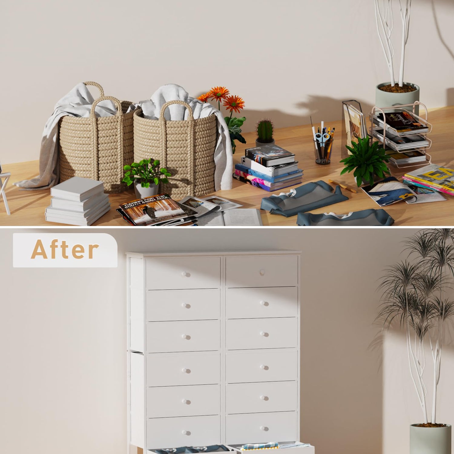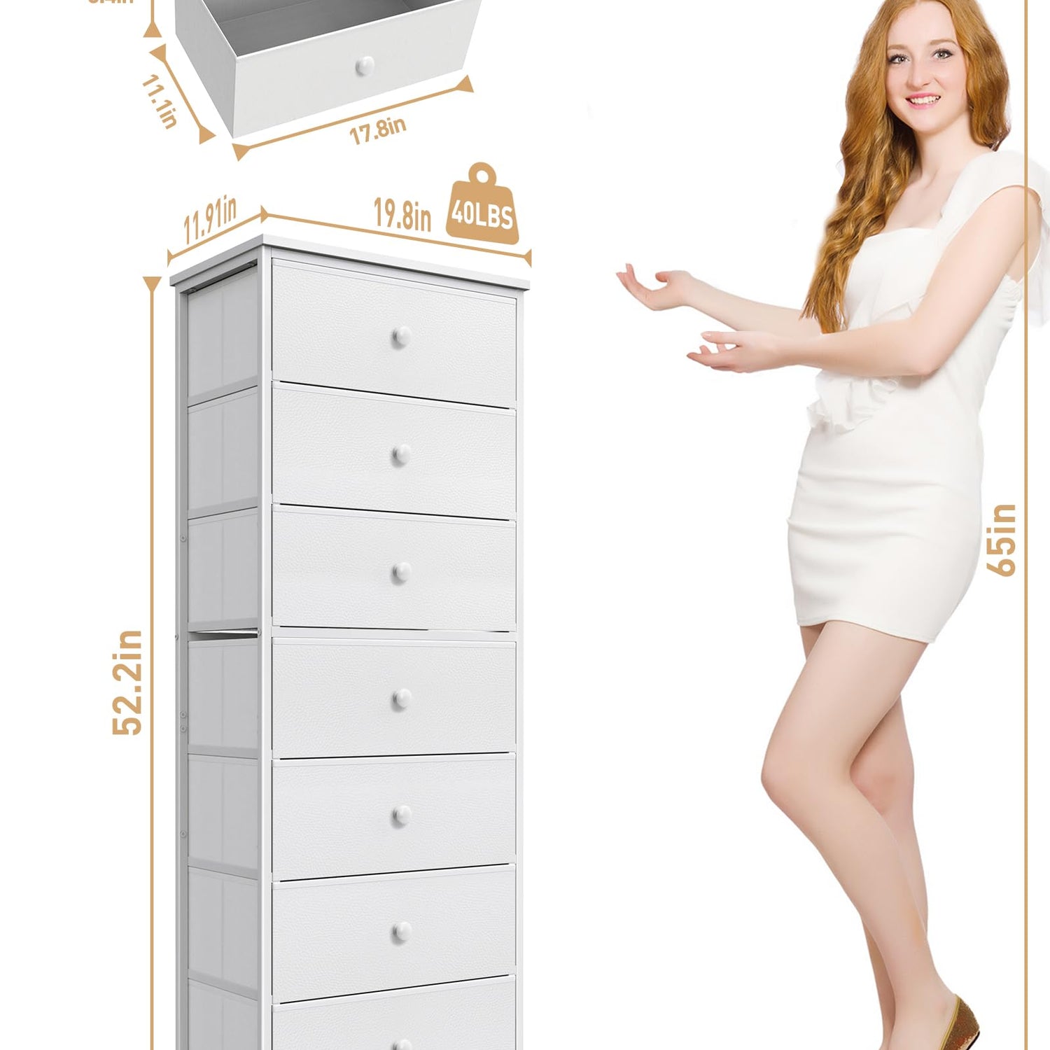 - ✔ 【Large Capacity】 This dressers & chests of drawers sizes 19.8"W x 11.91"D x 52.2"H and has 7 large drawers, which makes this tall dressers for bedroom very convenient and space-saving. Wood top provides a hard surface to place lamps, books, decor, and more. Each drawer holds at least 6 pants, 20 rolled up T-shirts. If you need dressers for bedroom organization, consider our 7 drawers dresser.