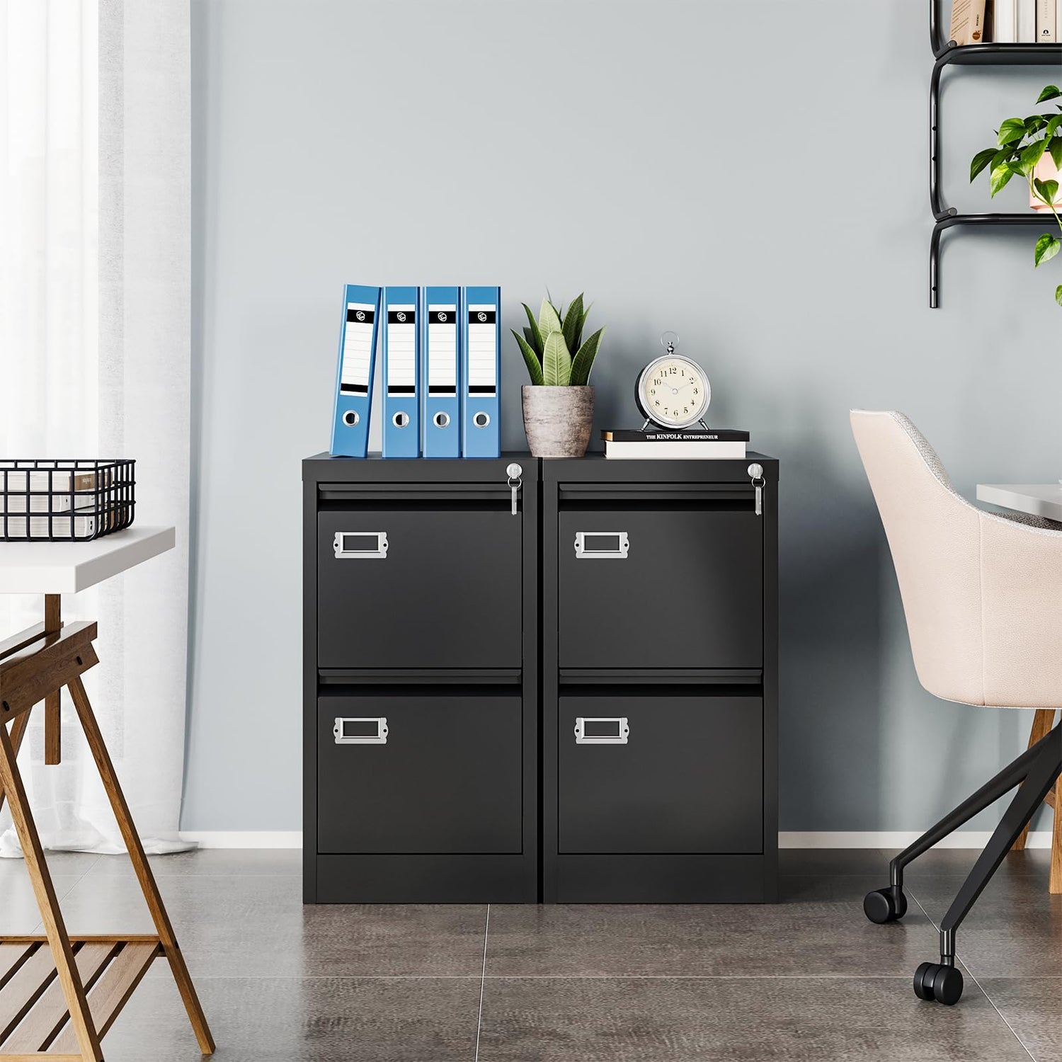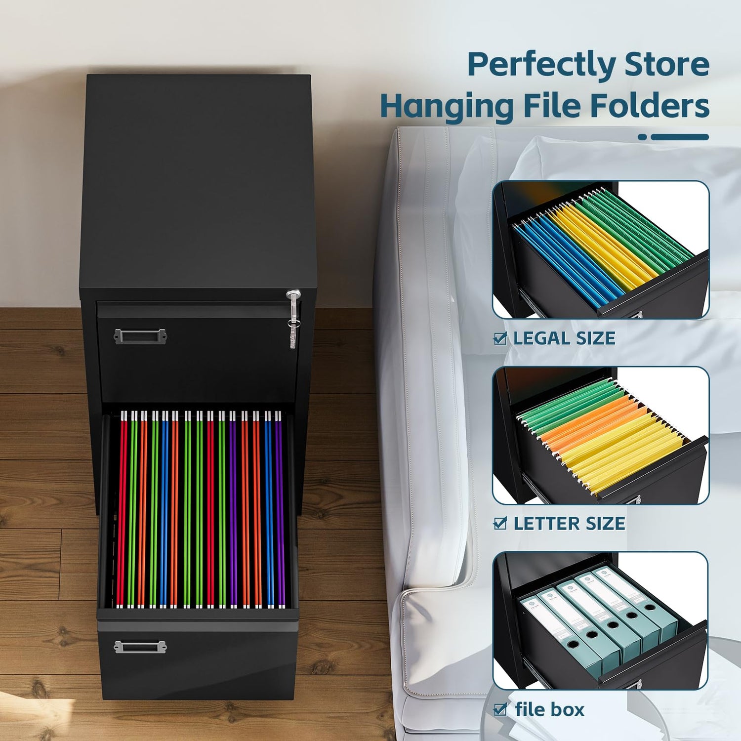 - 【Metal File Cabinet】This two drawer file cabinet is made of cold-rolling steel. A durable steel construction supports dependable lasting use. Each drawer is equipped with hith quality & full extention glide rails.