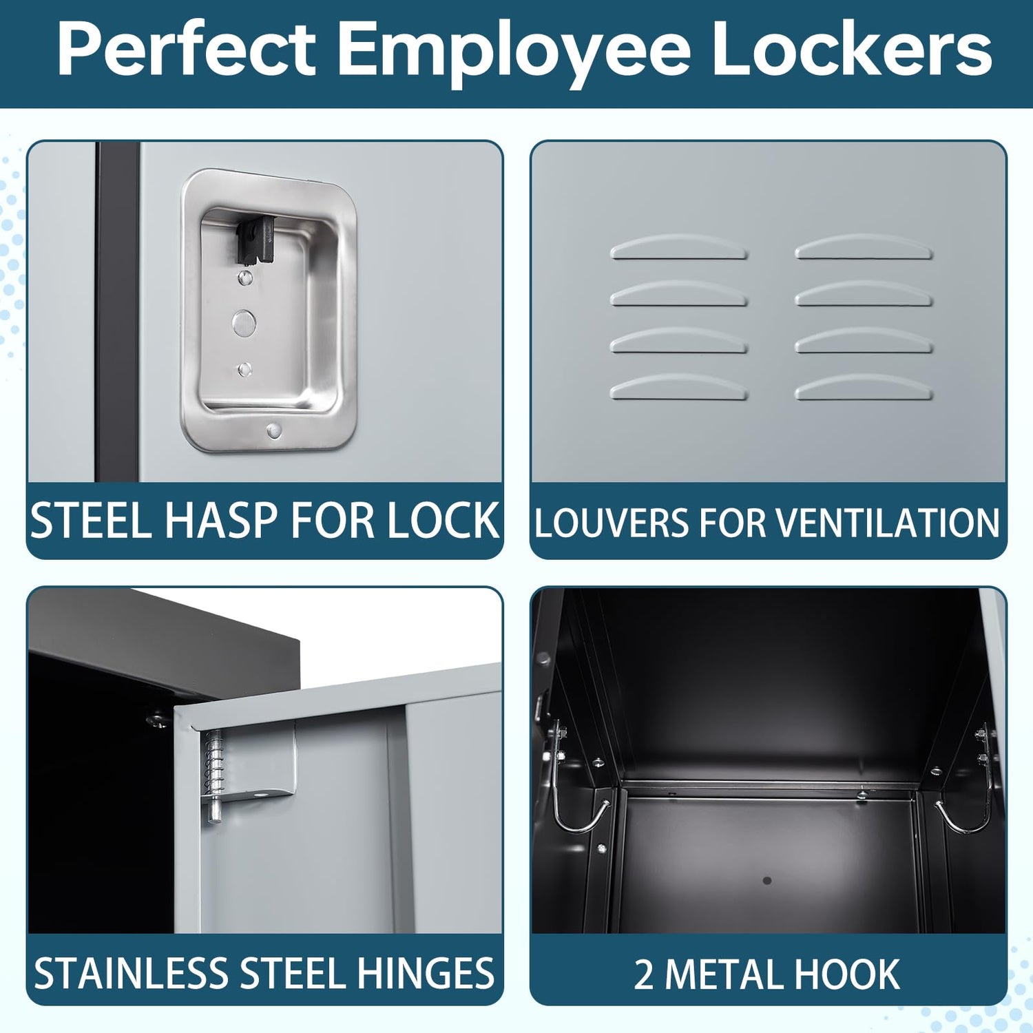 - 【Sturdy & Pratical Locker】Boasting a tough steel construction, this metal locker is durable enough to withstand heavy, extended use. Each steel locker door has built-in louvers to allow proper ventilation. Hang backpacks and coats on two hooks. Each door also features a lift up handle and recessed hasp, which can accommodate built-in combination locks and padlocks.