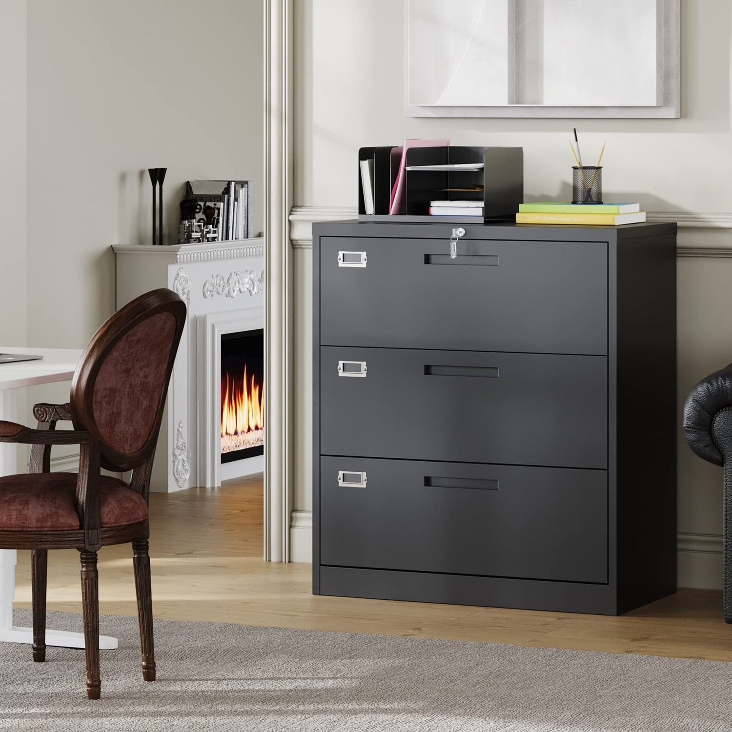 - 【3 Drawer File Storage】Lockable filing cabinets have deep and spacious drawers on full-extension & silent rails which can be open and close easily, provide easy access to all folders, Letter/Legal/A4/F4 Size.