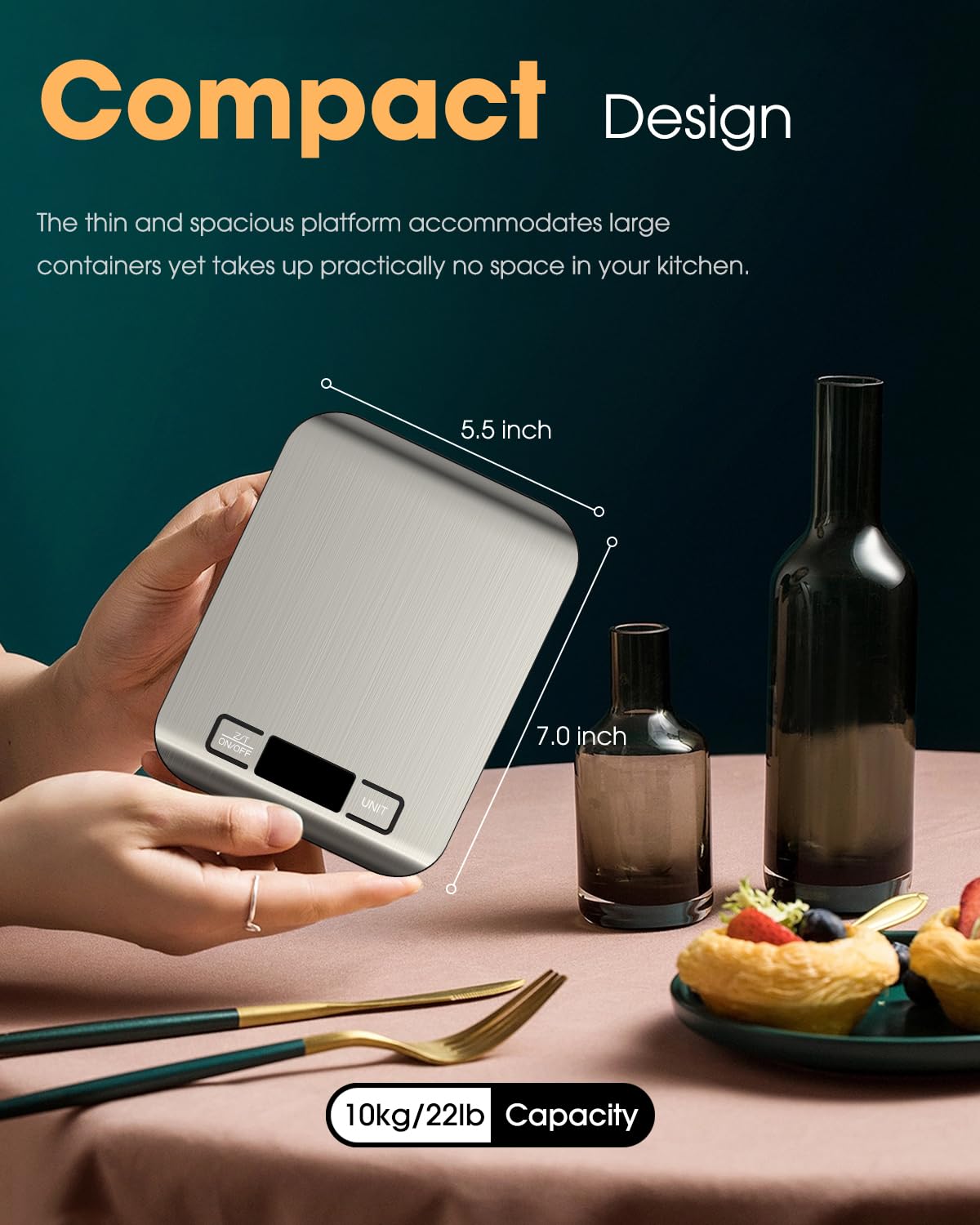 Mik-Nana Food Scale, 22lb Digital Kitchen Scale Weight Grams and Ounces for Baking Cooking Coffee Package Postage, 6 Units with Tare Function, LCD Display, Easy Clean Stainless Steel (Silver)