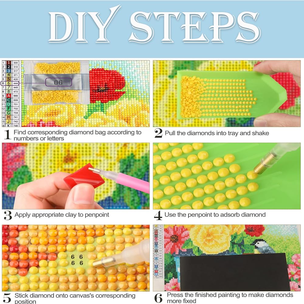 - High Quality Canvas:High clear printing oil canvas are waterproof,damp-proof and wrinkle-free , the canvas itself has a sticky background and plastic film to keep the picture sticky and then the beads will hold.