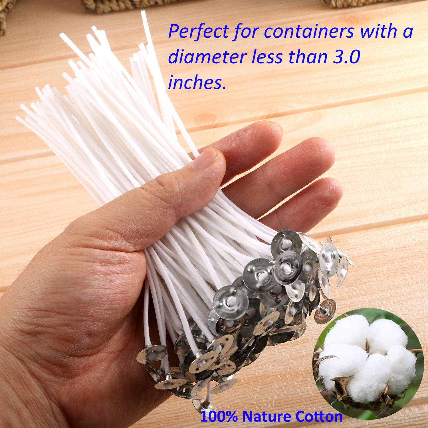 - 🕯️ Containing 100 pieces low smoke candle wicks, perfect for containers with a diameter less than 3.0 inches;100 pieces candle wick stickers; 6 pieces candle wick centering device; 100 pieces metal base (dia 12.5mm), meeting your various needs.
