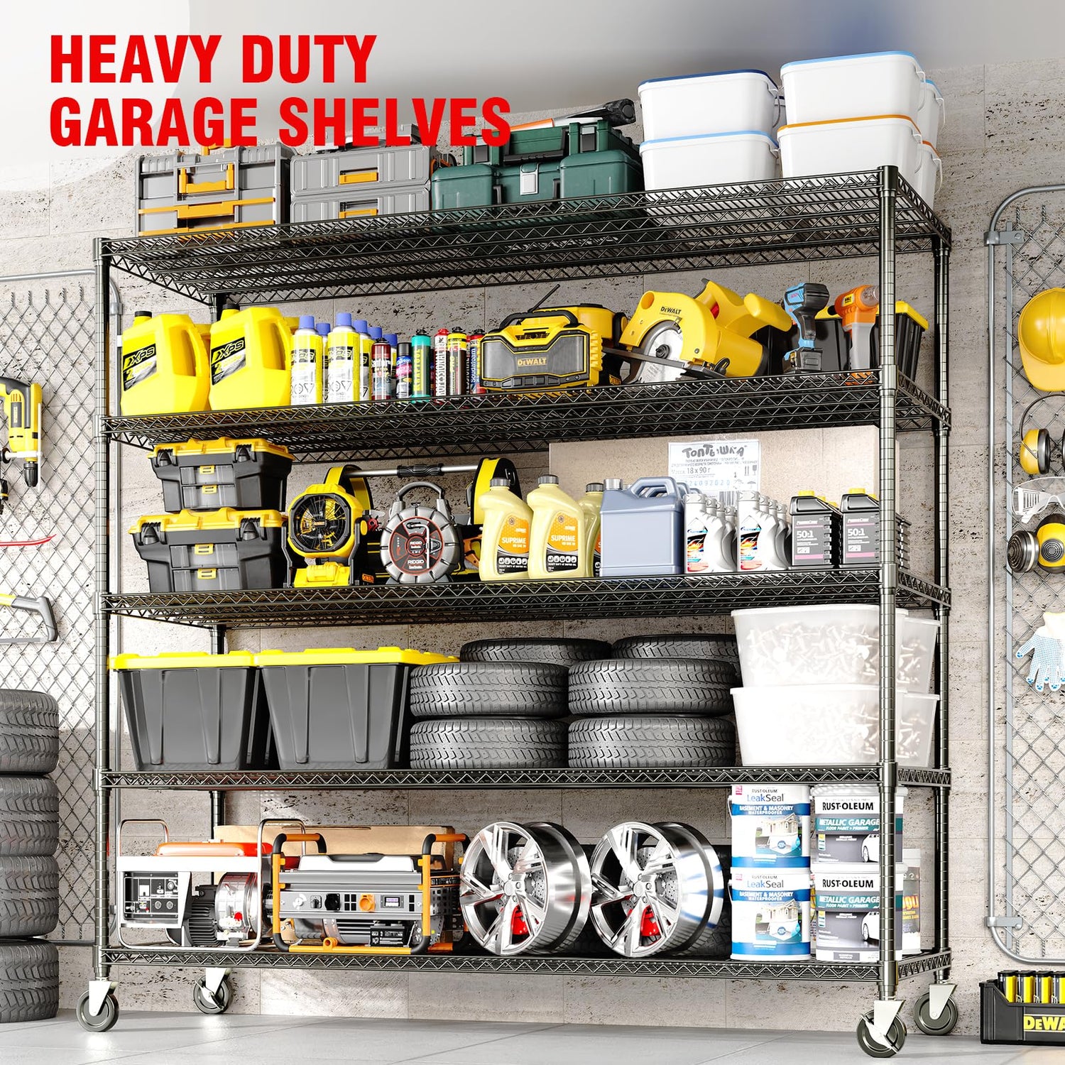 MilleLoom 5 Tier Industrial Storage Shelving Unit 3300LBS Capacity, Heavy Duty Adjustable Metal Shelves w/Wheels & Leveling Feet, Garage, Workshop, Basement Rack Shelf, 82.7" H X 59" W X 24" H, Black