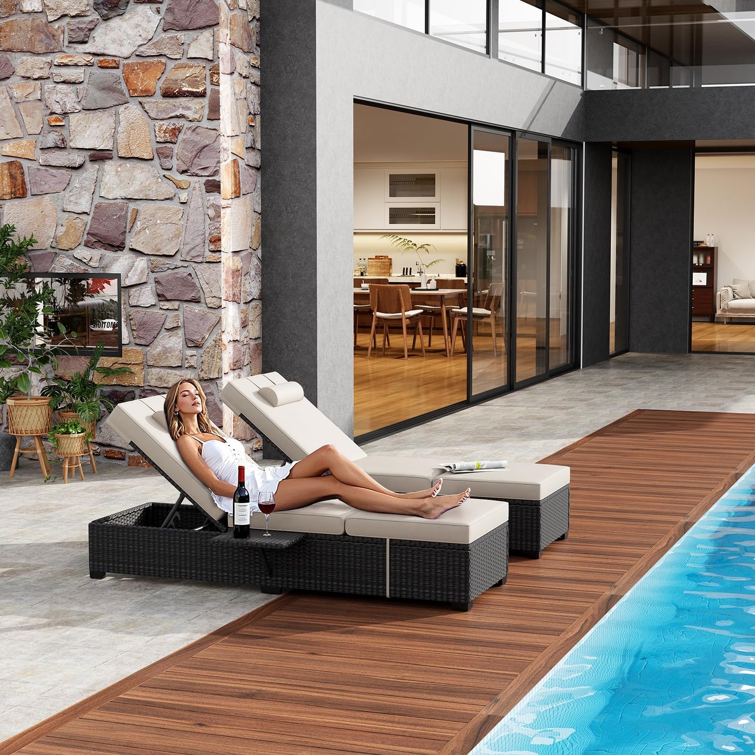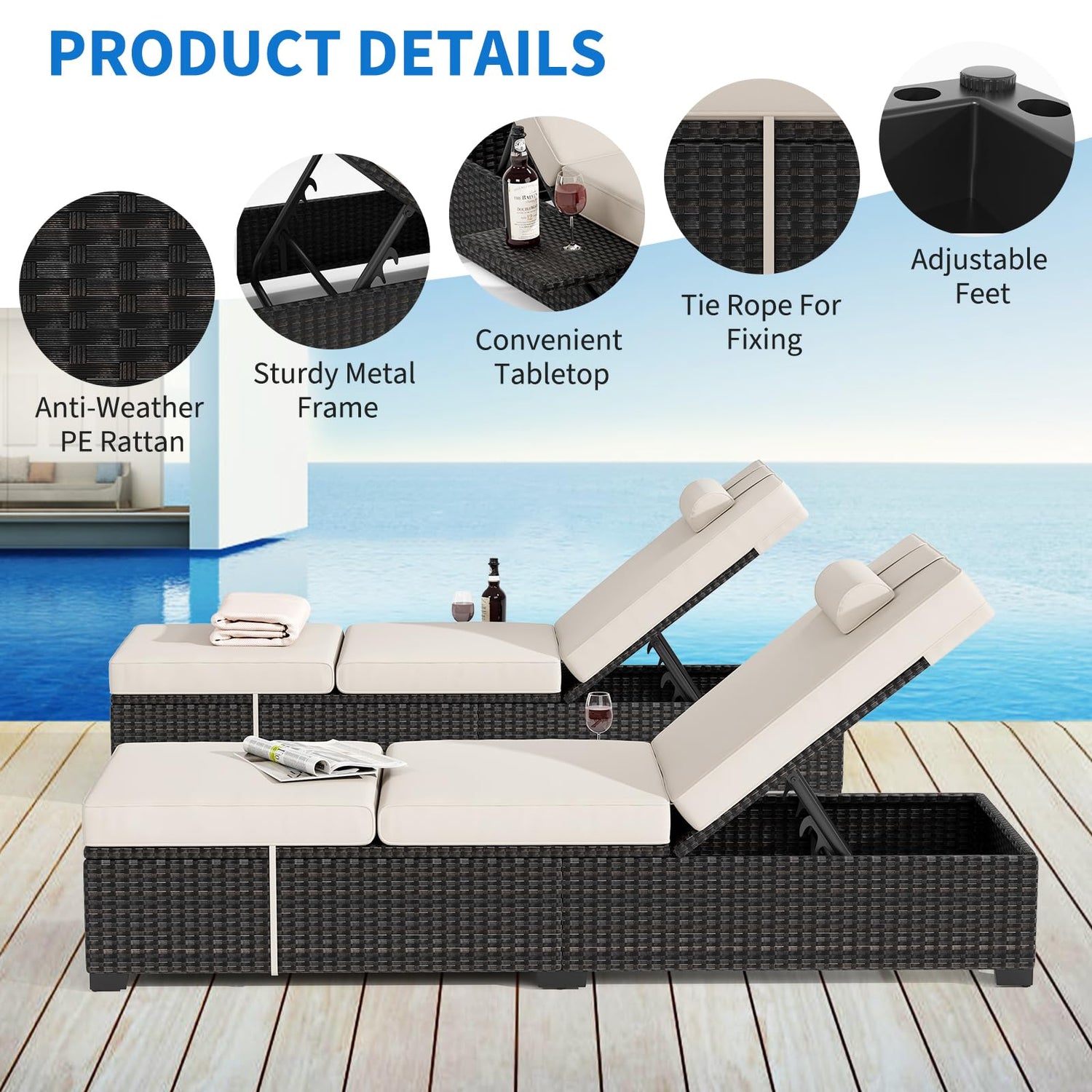- 【Versatile Outdoor Use】 Perfect for lounge chairs for poolside relaxation, this wicker chaise lounge outdoor can be used in your garden, patio, or pool area. Stylish and functional, it’s designed to elevate your pool furniture and make your outdoor lounging experience even more enjoyable