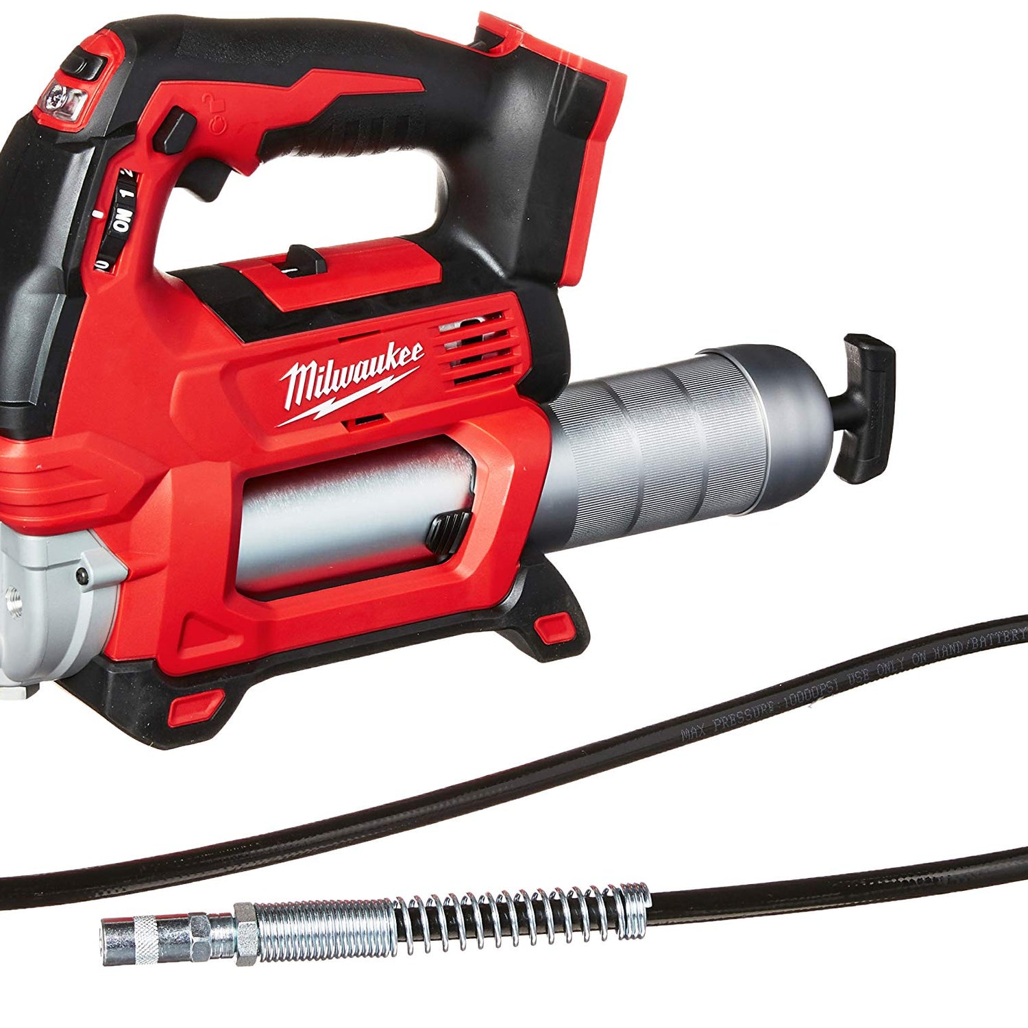 Details: The M18 Cordless 2-Speed Grease Gun delivers maximum pressure and unmatched versatility, offering an industry leading 10,000 PSI max operating pressure and a patent pending pre-set grease counter that allows service and maintenance professionals to dispense precise amounts of grease. The tools 2-speed design offers users the ability to select between max pressure and max flow rate. Other unique features include an on-board LED light, a lock-on/lock-off trigger, and a plunger rod with markings to gauge how much grease is left in the barrel. The tools stand up design and shoulder strap capability offer user convenience, while limiting fatigue and the 48 flexible hose offers greater accessibility when greasing hard to reach fittings. The new tool is also compatible with a clear barrel accessory. Powered by an M18 REDLITHIUM Battery pack, this is the industry's only 18V grease gun that's battery is compatible with a system of tools.