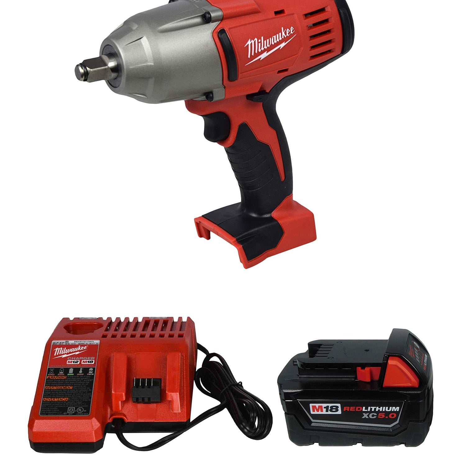 Details: Get the most powerful, most compact, longest-running impact wrench in its class. The M18 Cordless Lithium-ion 1/2" High-Torque Impact Wrench features a Milwaukee 4-pole motor and powerful impact mechanism to deliver a reliable 450 ft-lbs of torque with maximum runtime. You’ll get consistent speed control between 0-1900 RPM and 0-2200 IPM with the variable-speed trigger. A 1/2” anvil with friction ring allows quick and easy one-handed socket changes. Our M18 Battery delivers up to 2.5X more runtime, 20% more power and 2X more recharges than standard lithium-ion batteries. The lithium-ion battery pack features superior pack construction, electronics, and performance giving you more work per charge and more work over pack life than any battery on the market. The rechargeable battery also offers you 5.0 amp-hours of runtime. Each battery pack is durably built for heavy-duty use, runs cooler, and performs in climates below 0°F/-18°C. 48-59-1812 M18 & M12 Multi-Voltage Charger accepts all M18 and M12 batteries, so you’ll always be prepared and productive, especially on jobs that require a mix of M12 and M18 Milwaukee cordless power tools.