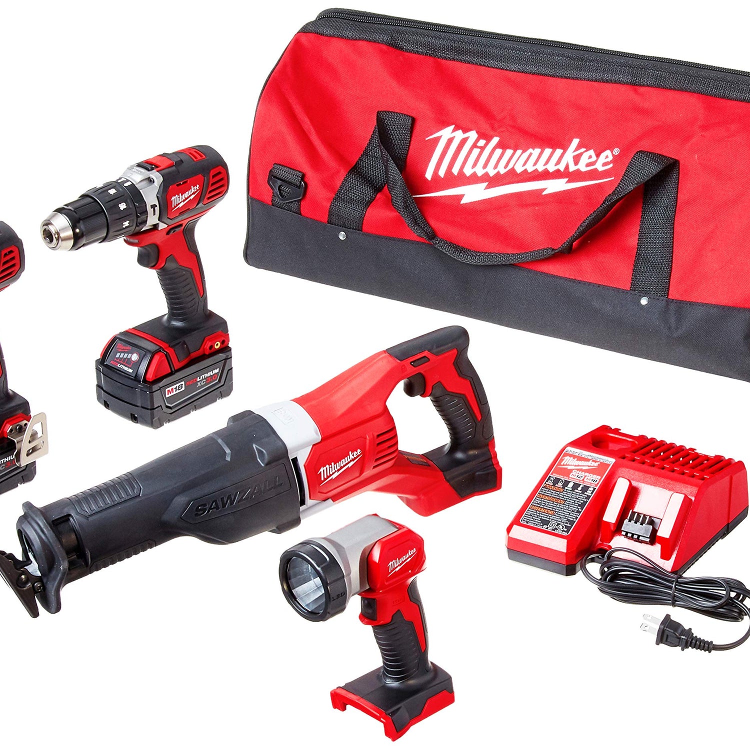 The 2696-24 M18 cordless 4-tool combo kit includes the 2602-20 1/2-inch hammer drill/driver, the 2620-20 Sawzall reciprocating saw, the 2650-20 1/4-inch hex impact driver, and the 49-24-0171 work light. The M18 cordless system's patented technologies and electronics, innovative motor design, and superior ergonomics provide the most efficient blend of power, weight, and performance in the industry. Powered by Red Lithium batteries, the M18 cordless system delivers high torque, high power, and a long run-time.