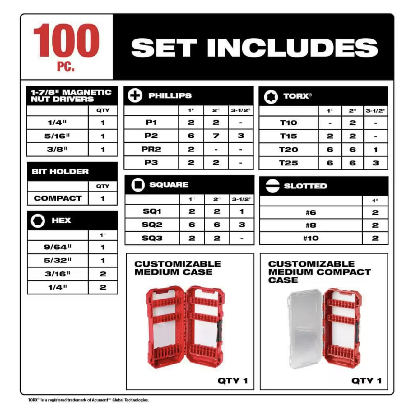 Details: SHOCKWAVE Impact-Duty Alloy Steel Screw Driver Bit Set (100-Piece) 48-32-5150