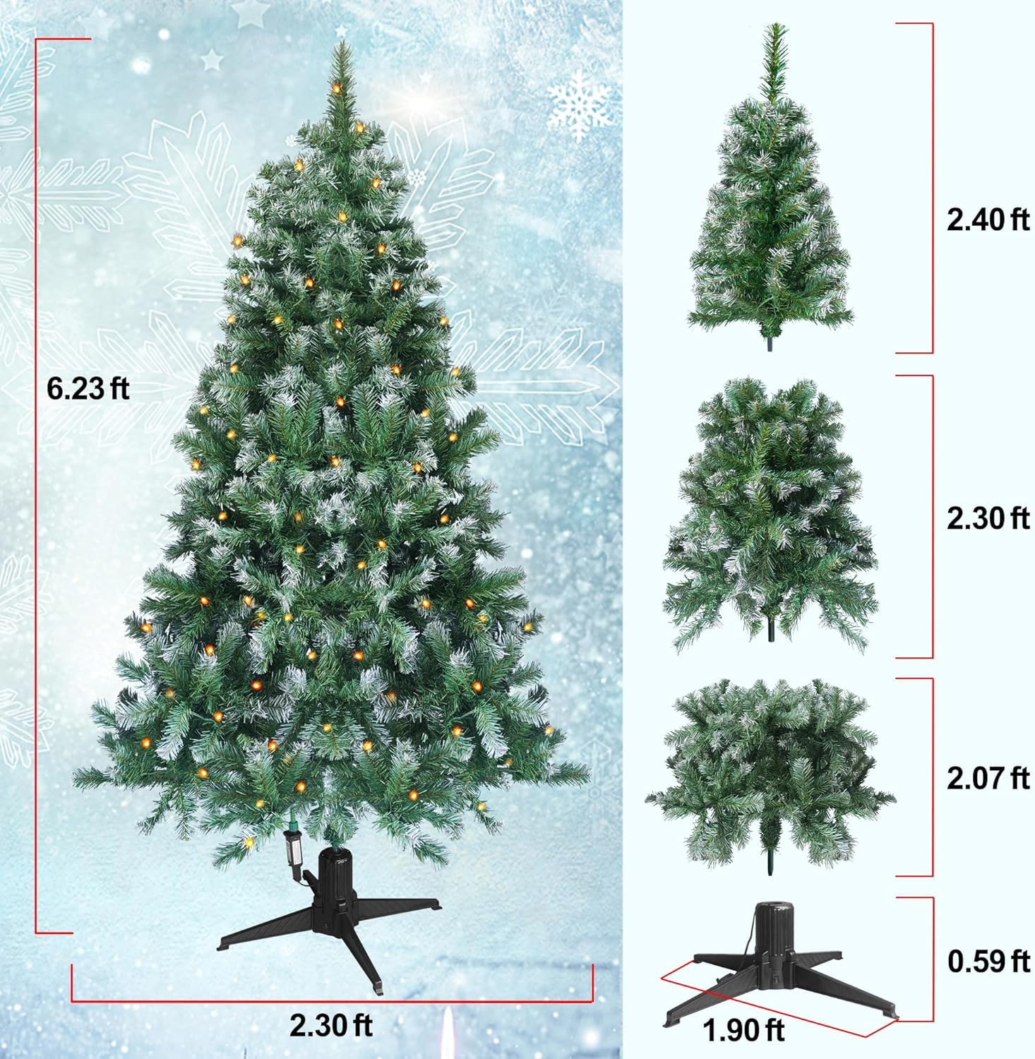 • Realistic Christmas Tree: Our artificial Christmas tree features ultra-realistic branches that resemble a real tree. With 300 LED lights, you can choose between warm white or multi-color settings. The 360° rotating stand allows for a full view of your decorations from any angle.