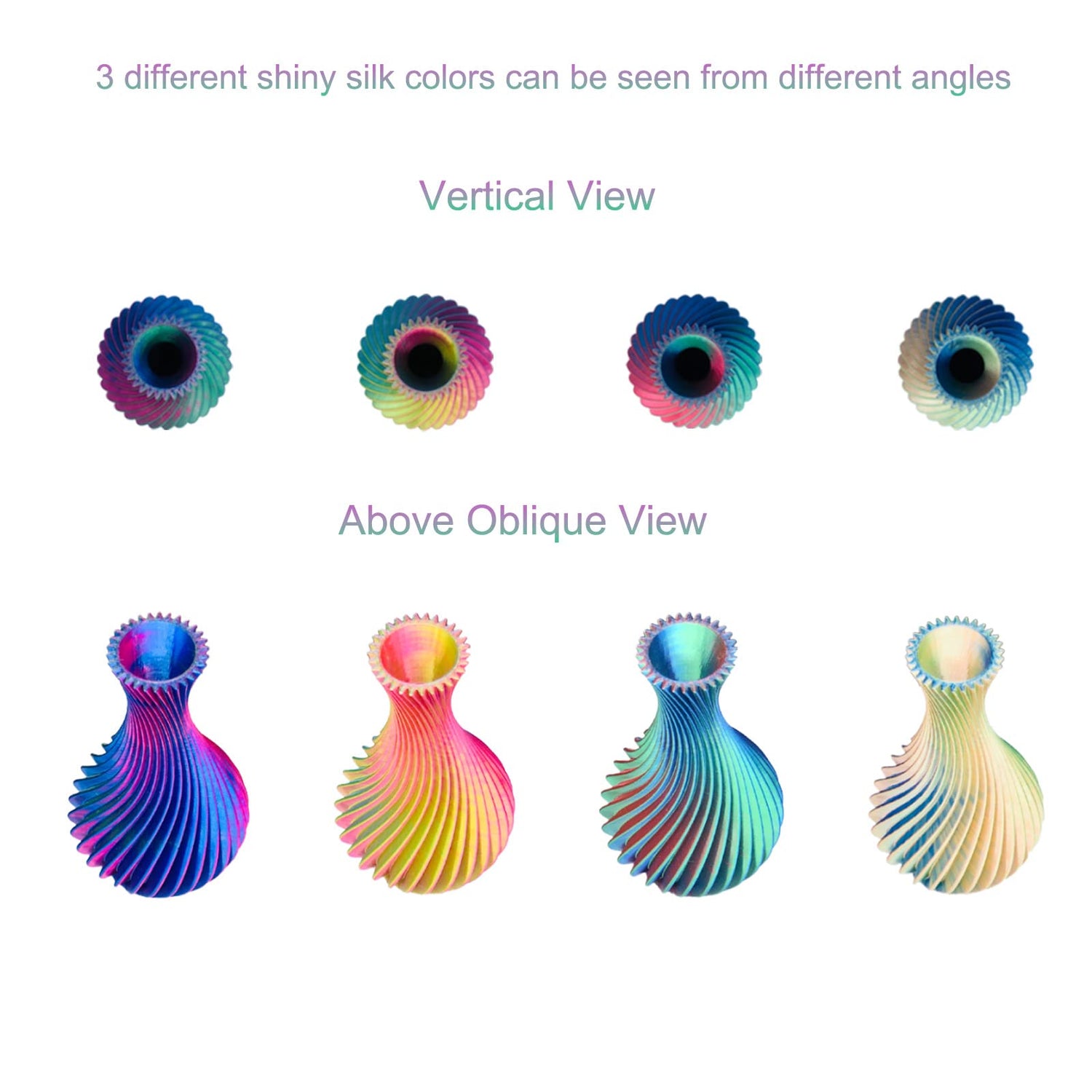 - 2. Seamless Color Transitions Pla Filament: Mindahand advanced extrusion manufacturing process ensures the shiny silk pla filament smooth and gradual color changes, this creates a stunning, continuous gradient that enhances the aesthetic quality of your models, providing your 3d prints with an eye-catching gradient effect