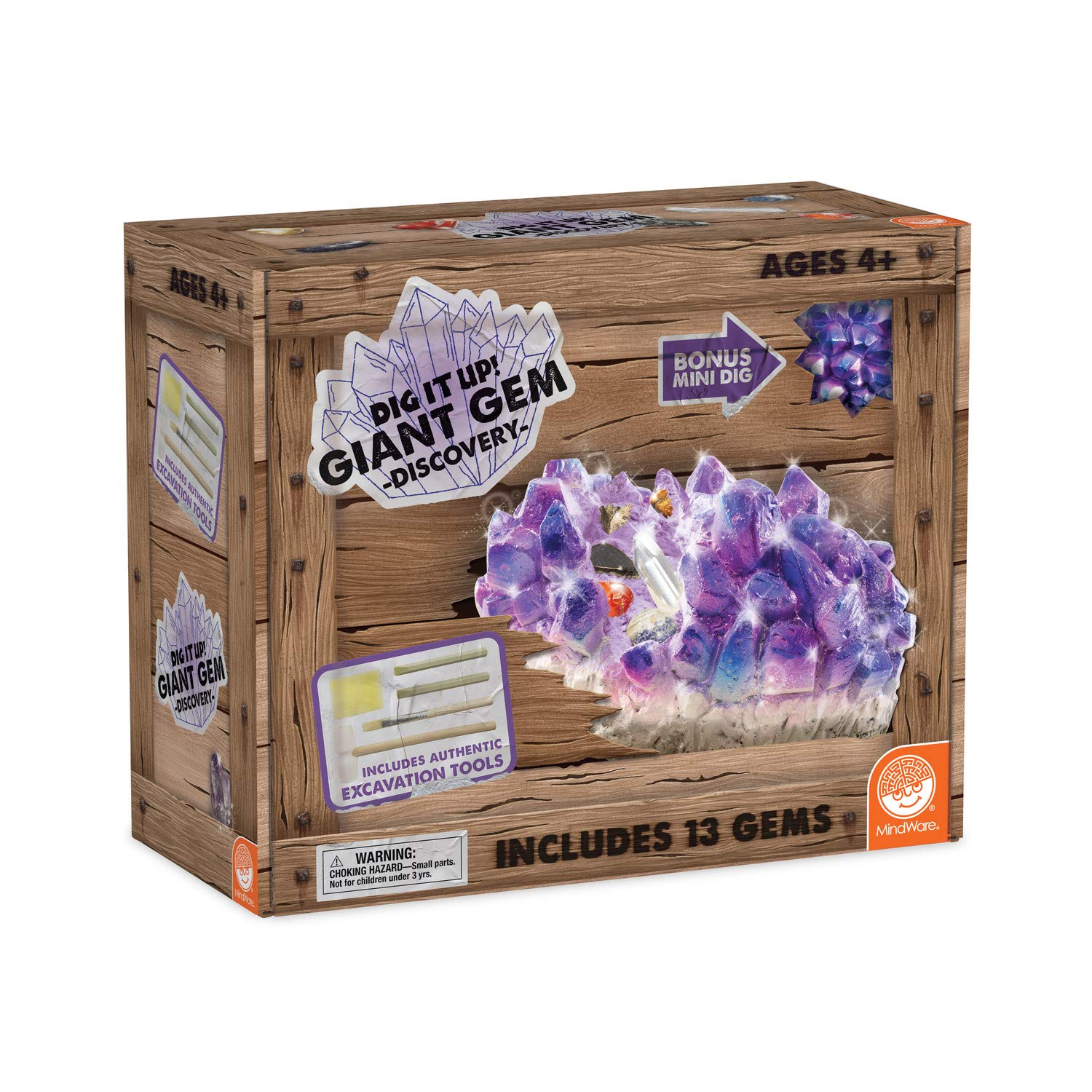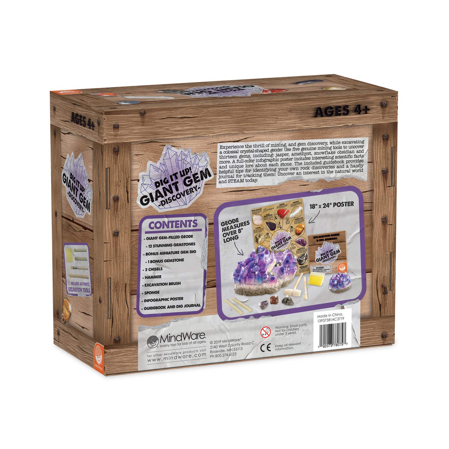 MindWare Dig It Up Giant Gem Discovery Kit - Gemstone Dig Kit Offers Geology for Kids with 12 Real Polished Hidden Gemstones - Includes 1 Giant Gem, Chiseling Tools, Gemstone Poster - Ages 4+