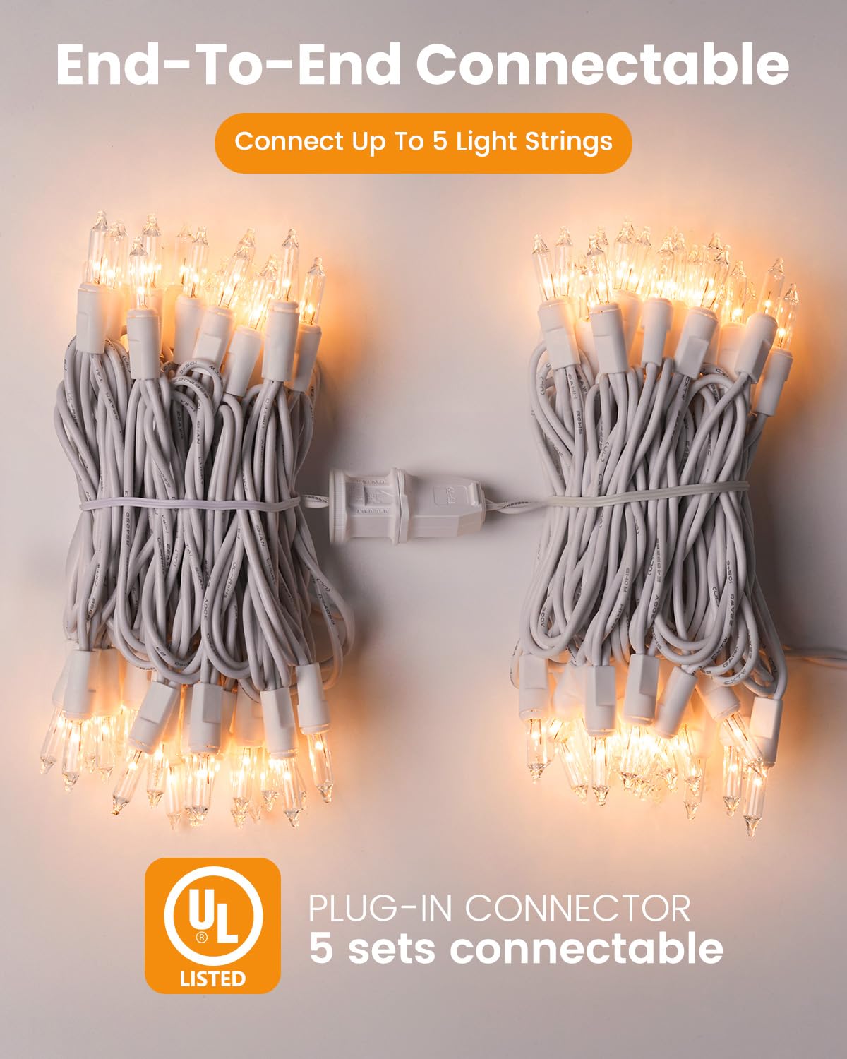- Easy to Install: The Christmas light sets come with 1 spare fuses and 2 spare bulbs for easy replacement. This mini Christmas light can be connected end-to-end and can be extended to a longer connection length, making it be suitable for different decoration needs. It can be easily installed without additional tools