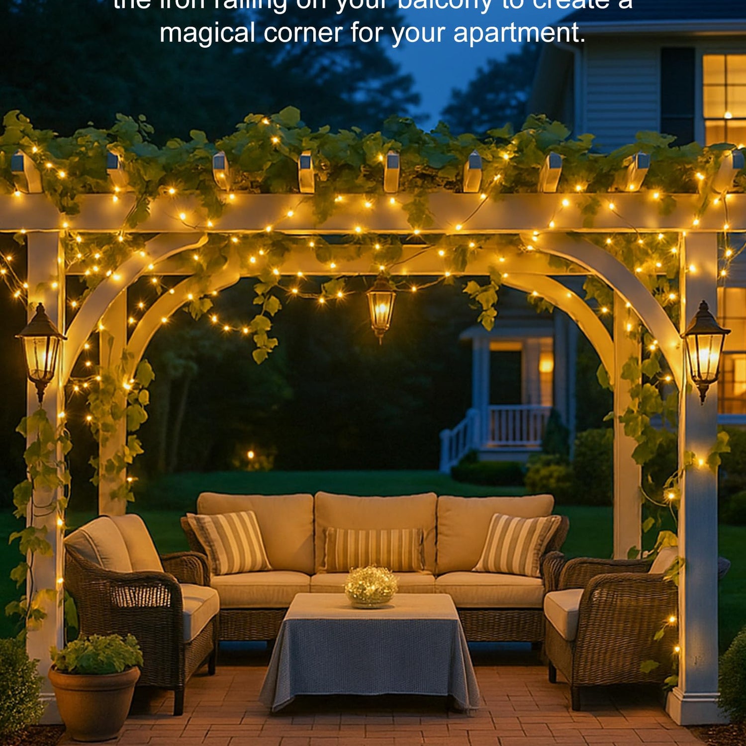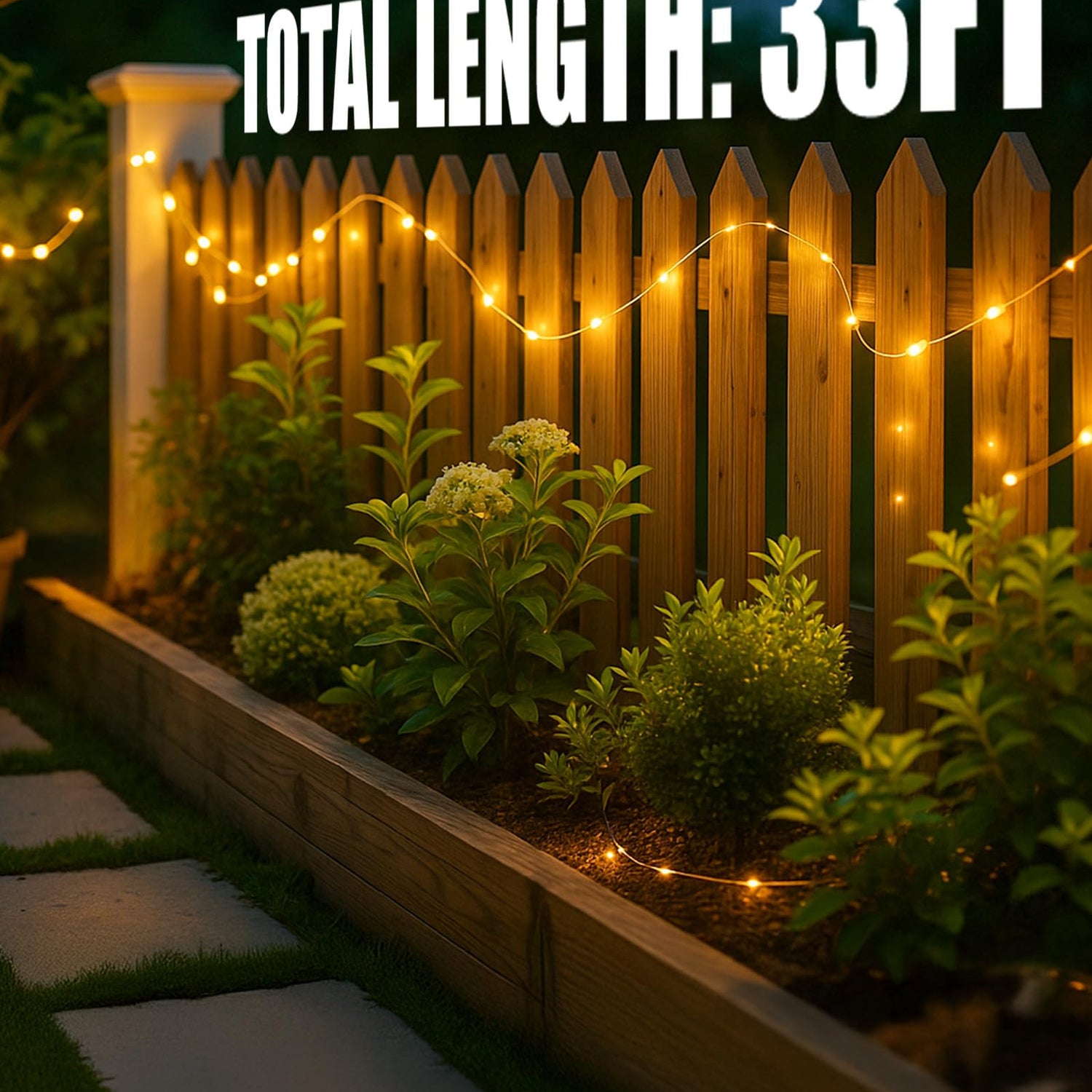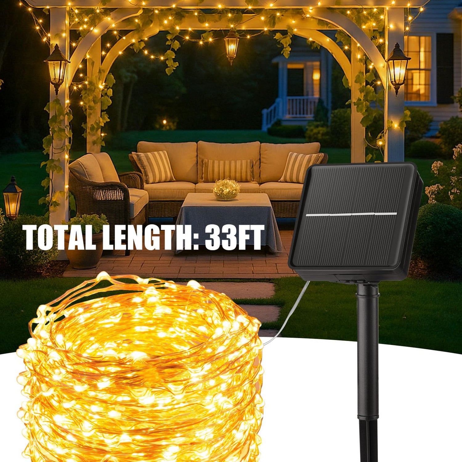 - 【Solar Lights Outdoor】33 Feet outdoor tree lights with 100 bright LED lights. The solar fairy lights produce a warm white glow, fit well on your porch, garden, yard, patio, and balcony.These decorative outdoor Christmas lights are great for creating the great ambiance.