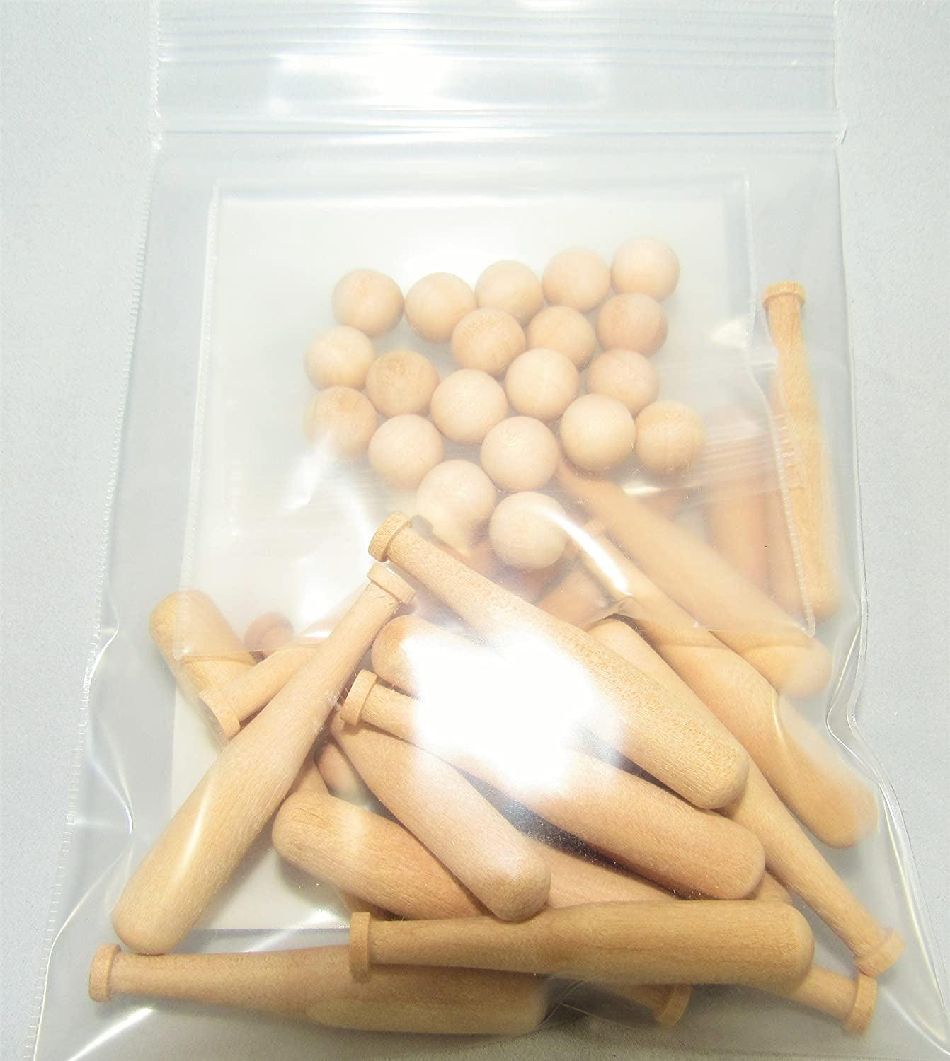 Mini Baseballs and Bats Value Set (20 Pack Each) for Scrapbooking, Arts, Crafts, Unfinished Wood / 2" Long Bats with 3/8" Baseballs / (40 Pieces