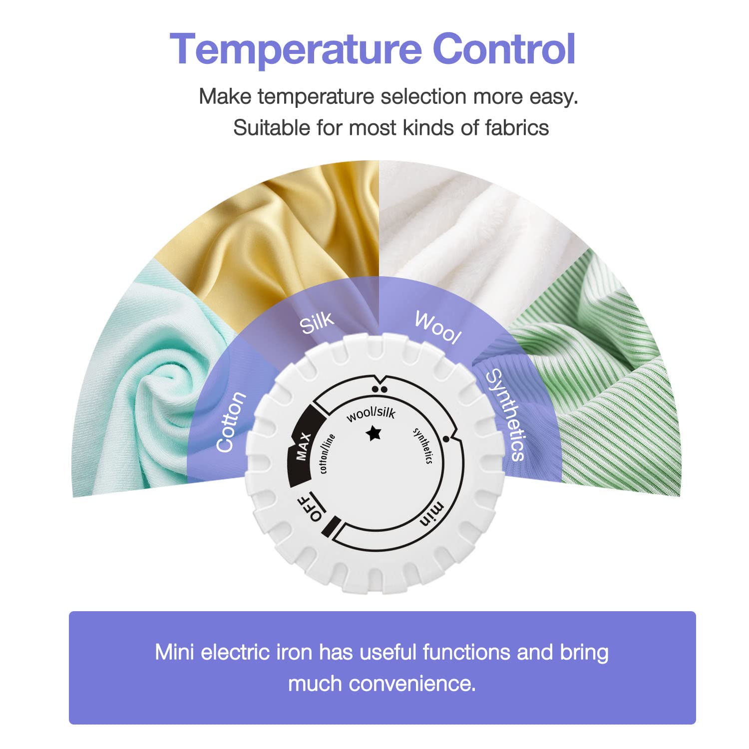 - Considerate Design:Mini heat press with adjustable temperature control-highest temperature reaching 430 Fahrenheit in a short period of time. The mini irons for crafts designed different temperature mode fit various common fabric, cotton, line, wool, synthetic. Spraying water on the cloth would help to better ironing .