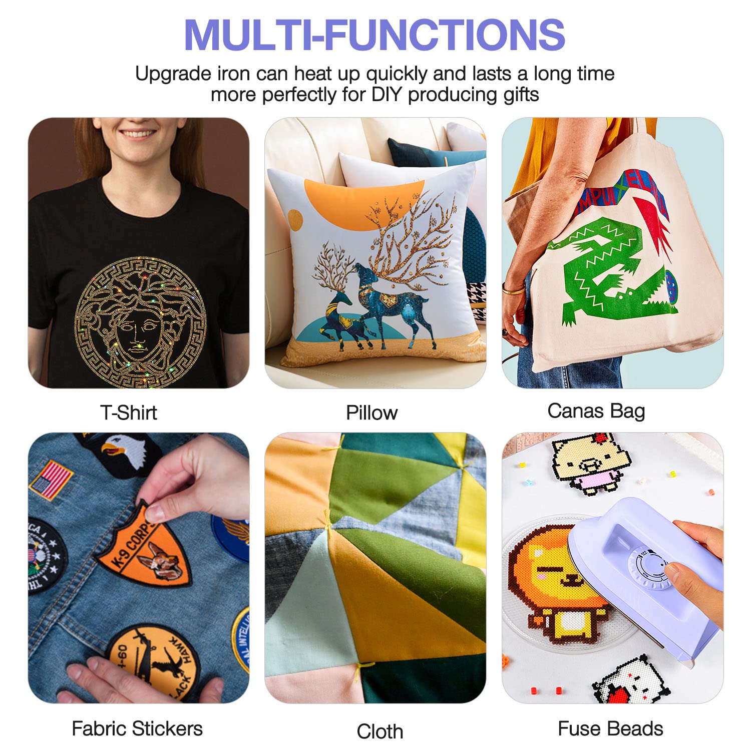 - Multiple Uses: This mini electric iron available for both heat press and ironing, easy to operate for who love DIY and hand crafting, such as patch iron, heat transfer vinyl, diamonds, etc., The practical gift for craft enthusiasts and
